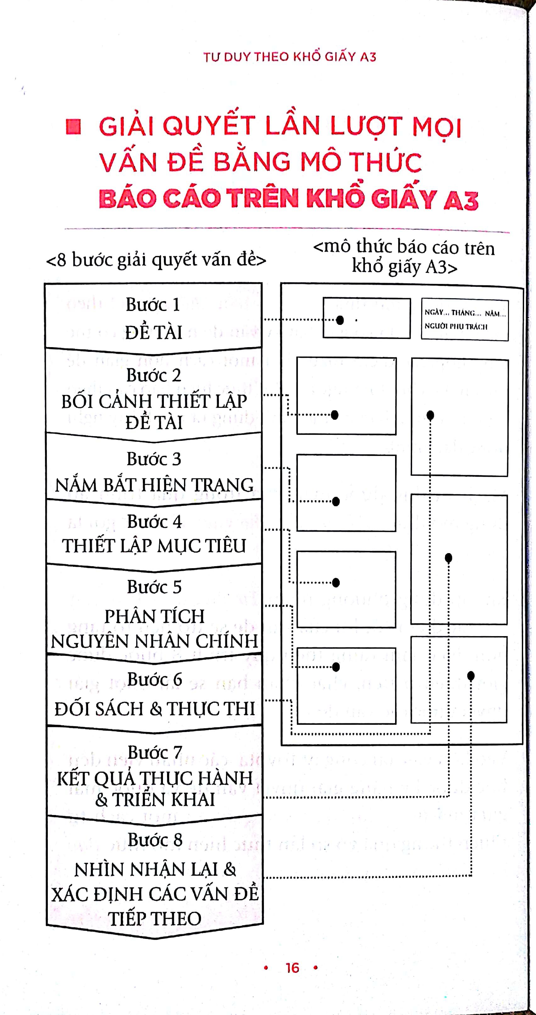 A3 là khổ giấy ứng dụng khá hạn chế trong đời sống. Nhưng, với Toyota, thương hiệu được biết đến với việc sản xuất xe ô tô cho toàn thế giới, khổ giấy này dùng để làm báo cáo. Mô thức này hoàn toàn khác biệt với những báo cáo theo cách thông thưòng: những bảng kê dài trên giấy A4. Đây cũng là một trong những bí mật tạo nên thành công của Toyota trong nhiều thập kỷ qua. Sau 17 năm làm việc cho hãng, Sumie Ishii, tác giả tập sách, người nắm giữ được mô thức này đã chia sẻ cho mọi người bí quyết thành công ấy.