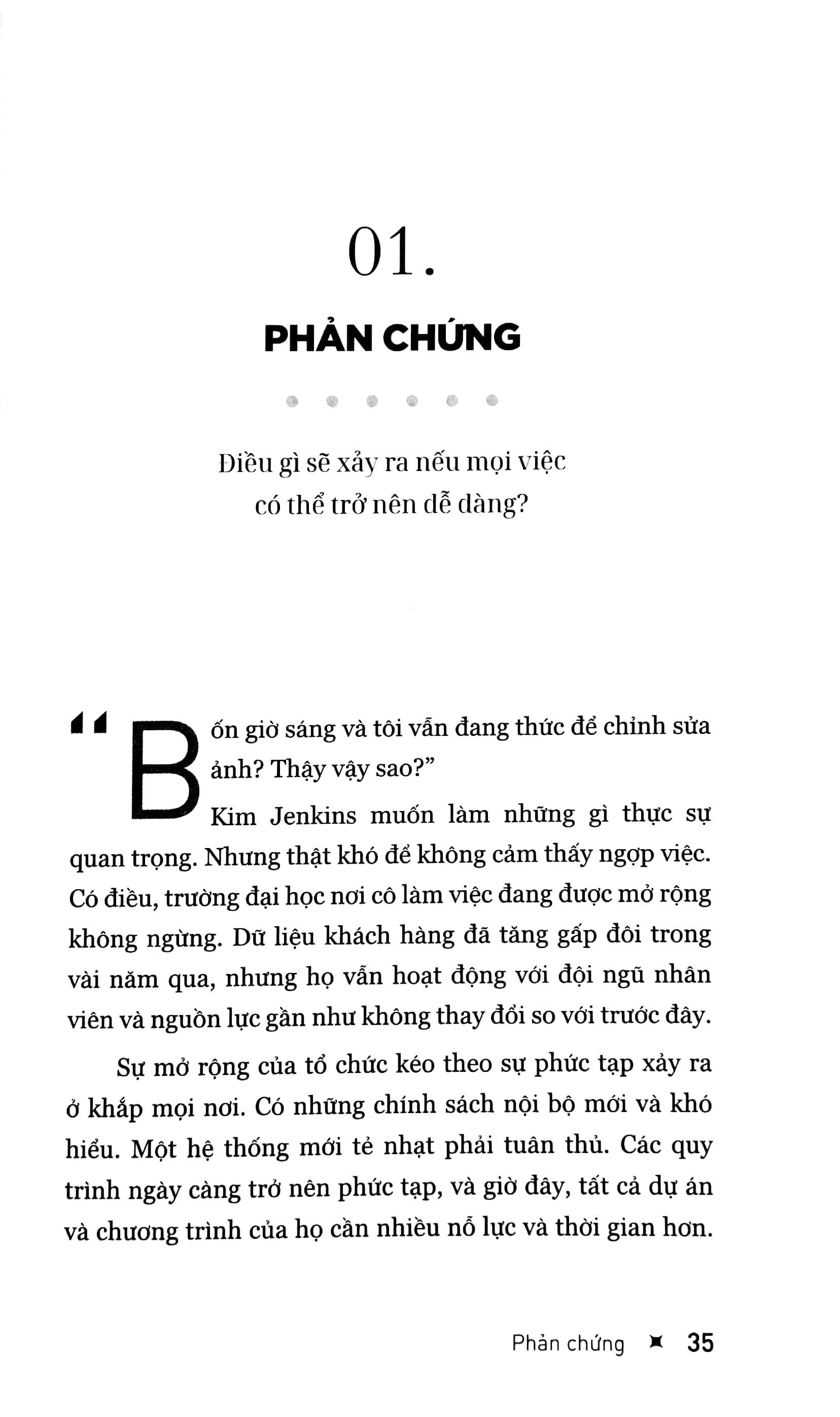 Bạn có bao giờ cảm thấy: đang ở trên bờ vực của sự kiệt sức?; muốn đóng góp nhiều hơn; nhưng thiếu năng lượng?; đang chạy nhanh hơn nhưng không tiến gần đến mục tiêu của m.ình?; mọi thứ khó hơn rất nhiều so với trước đây?. Là những người đạt thành tích cao, chúng ta có cơ sở để tin rằng con đường dẫn đến thành công được mở ra bằng sự nỗ lực không ngừng. Rằng nếu muốn đạt kết quả vượt trội, chúng ta phải làm việc quá sức, suy nghĩ quá mức tới mức kiệt sức. Rằng nếu không thường xuyên cảm thấy bị vắt kiệt sức lực thì chúng ta chưa làm đủ. Càng mệt mỏi, chúng ta càng phải nỗ lực để tiến bộ hơn. Bị mắc kẹt trong một vòng lặp vô tận “Họp, ăn, ngủ, lặp lại”, chúng ta thường cố gắng làm việc chăm chỉ gấp đôi để đạt được một nửa kết quả mà đáng ra có thể dễ dàng đạt được. Bất kể chúng ta phải đối mặt với những thách thức hay trở ngại nào, vẫn có phương pháp hiệu quả hơn: thay vì thúc đẩy bản thân làm việc cực khổ hơn, chúng ta có thể tìm ra một con đường dễ dàng hơn. Effortless đưa ra những lời khuyên hữu ích để biến những hoạt động thiết yếu nhất trở thành những hoạt động dễ dàng nhất, để bạn có thể đạt được kết quả m.ình muốn mà không bị kiệt sức hay phải dành ra quá nhiều công sức mà không mang lại hiệu quả tương xứng.