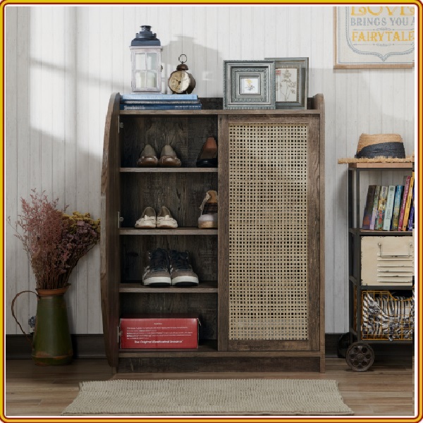 ✨Tủ giày gỗ sồi màu walnut đan mây lỗ kiểu độc đáo Juno Sofa