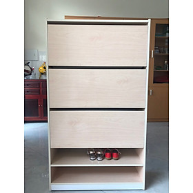 Tên sản phẩm: TỦ GIÀY 026 Mã sản phẩm: TG026 Kích thước: dài 1200 x rộng 320 x cao 1000mm Mô tả: 3 hộc cánh mở, 1 hộc kéo, 4 hộc tróng tiện dụng Vật
