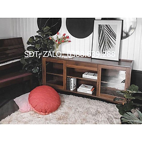 ✨Tủ kệ trưng bày loại thấp BÌNH LONG chất liệu gỗ màu tự nhiên, 2 cánh kính