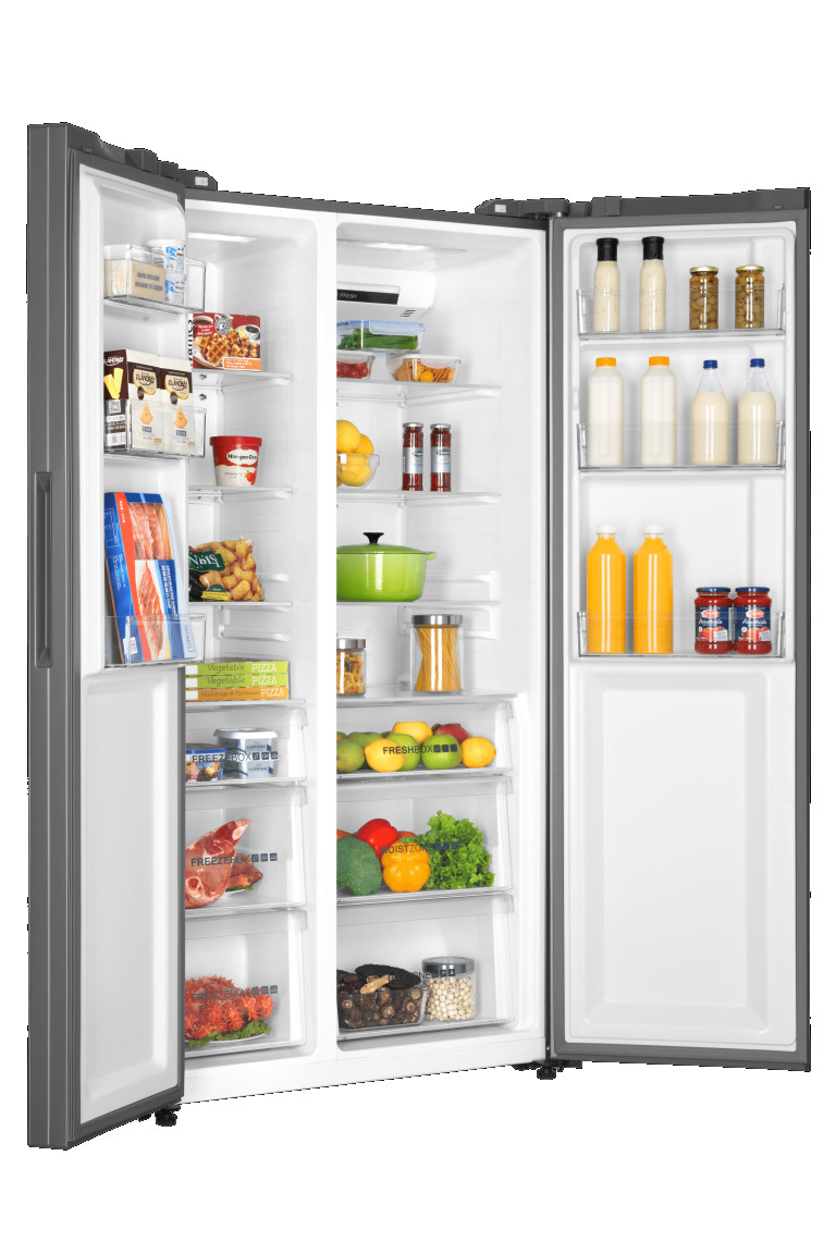 – Tủ lạnh Side By Side 2 cánh – Tổng dung tích (Total Gross Volume) 573 L + Dung tích ngăn đông (Gross Freezer Volume): 234 L + Dung tích ngăn lạnh (Gross Refrigerator Volume): 339