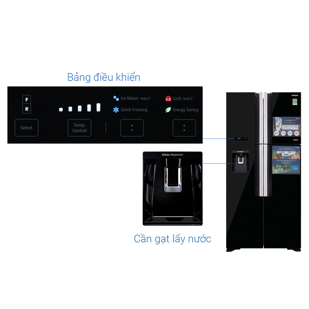 Tủ Lạnh HITACHI Inverter 540 Lít R-FW690PGV7X(GBK) có màu đen rất đẳng cấp cùng với các đường nét thiết kế hiện đại làm tôn lên sự nổi bật cho gian bếp nhà bạn. Thiết kế tủ lớn Side by side có dung tích 540 lít phù hợp với gia đình đông thành viên.