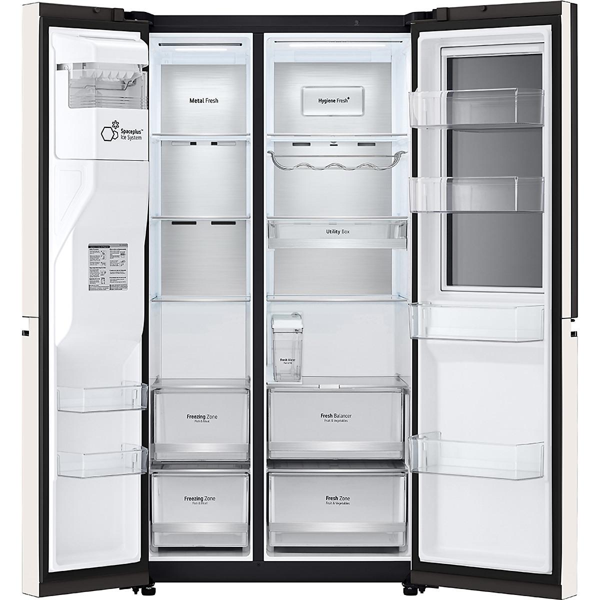 - ĐƯỢC KHUI THÙNG KIỂM TRA sản phẩm trước khi thanh toán/ký nhận Đặc điểm sản phẩm Model: GR-X257BG Màu sắc: Be Nhà sản xuất: LG Xuất xứ: Trung Quốc Năm ra mắt : 2023 Kiểu tủ lạnh: Side by side Số cửa tủ: 2 cửa Dung tích tủ lạnh: 674 L Dung tích sử dụng: 635 L Dung tích ngăn đá: 219 L Dung tích ngăn lạnh: 416 L Đóng tuyết: Không Chất liệu khay: Kính cường lực Công nghệ làm lạnh: LINEARCooling, DoorCooling+ Công nghệ bảo quản thực phẩm: FRESHBalancer Kháng khuẩn / Khử mùi: Hygiene Fresh+ Chất liệu bên ngoài: PCM Màu Be Công nghệ Inverter: Có Inverter Làm đá tự động: Máy làm đá tự động (Spaceplus), làm đá viên, đá nghiền Lấy nước bên ngoài: Có Điện năng tiêu thụ: 688 kWh/năm (2 sao) Kết nối Wifi: Wifi ThinQ Tiện ích khác: Chuẩn đoán thông minh (Smart Diagnosis); Đông nhanh (Express Freeze); Hộp tiện ích (Utility Box), giá đựng rượu, hộp đựng rau; Khóa trẻ em (Child lock); Cảnh báo cửa (Door alarm) Khối lượng sản phẩm (kg): 131 kg Kích thước sản phẩm: 913x735x1790 mm Ngăn đá