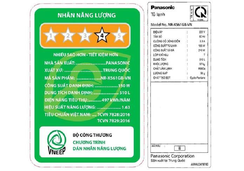 Công suất tiêu thụ công bố theo TCVN:497 kWh/năm