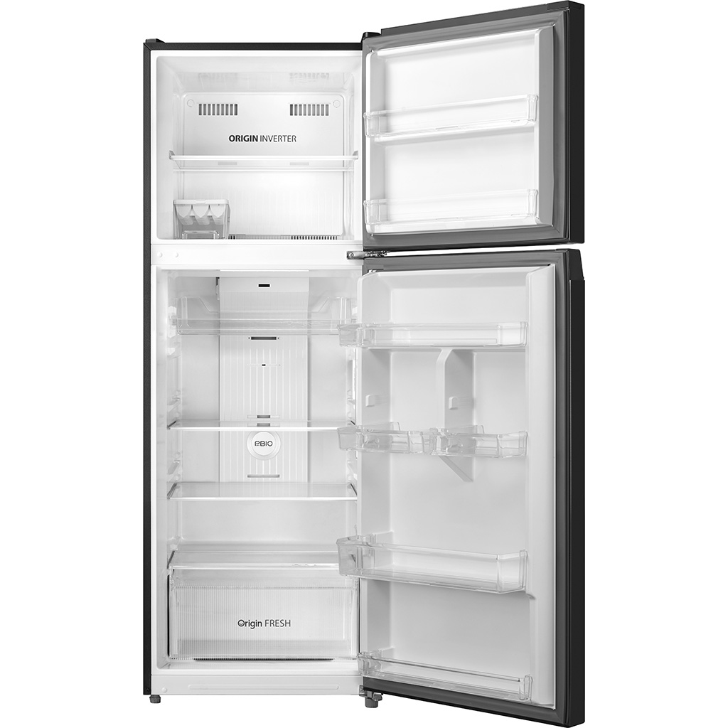 - Khay đá được thiết kế dạng hộp và có thể di chuyển tiện lợi, gồm có vỉ đá phía trên và hộp đựng đá phía dưới. Ngăn lạnh Dung tích ngăn lạnh 228 lít. Không gian bên trong gồm có 1 hộc kéo, 2 kệ chia làm 3 ngăn và 1 ngăn rau củ quả. Ngoài ra, bên cánh cửa tủ lạnh còn được thiết kế 5 khay chứa tiện lợi. Công nghệ tiết kiệm điện Công nghệ Origin Inverter: Kết hợp quạt và máy nén để duy trì nhiệt độ bên trong tủ lạnh Toshiba luôn ổn định, đồng thời còn giúp cho tủ lạnh vận hành êm ái và sử dụng điện năng tiết kiệm tối đa. Công nghệ làm lạnh + Công nghệ bảo quản thực phẩm - Luồng khí lạnh đa chiều Multi Air Flow: Hơi lạnh được tỏa ra từ các cửa thoát hơi lạnh và phân bổ khắp mọi ngóc ngách bên trong mỗi ngăn tủ, giúp cho thực phẩm được làm lạnh toàn diện và giảm thiểu tỷ lệ hư hỏng. - Ngăn rau quả Origin Fresh: Cho phép bạn tùy chỉnh độ ẩm bên trong ngăn chứa theo 2 mức từ 60% - 80%, giúp rau củ giảm thiểu được tình trạng úng hoặc héo trong suốt thời gian bảo quản, thích hợp cho các hộ gia đình sử dụng rau củ quả thường xuyên. Công nghệ kháng khuẩn khử mùi Công nghệ PureBio bộ lọc tinh thể Ag+: Sử dụng bộ lọc bằng gốm sứ (ceramic) được thiết kế dạng tổ ong, đồng thời nhúng tinh thể Bạc Ag+ và than hoạt tính. Vì thế, công nghệ này có khả năng khử mùi toàn diện và diệt khuẩn đến tận 99.99%, góp phần duy trì độ tươi ngon thực phẩm tốt hơn và đảm bảo không gian bên trong tủ lạnh Toshiba 312 lít này luôn sạch sẽ, thông thoáng. Bảng điều khiển Bảng điều khiển được thiết kế dạng nút nhấn, dễ dàng thao tác và sử dụng. Hơn nữa, nó còn được bố trí phía bên trong tủ lạnh, tránh trẻ nhỏ nghịch phá. Tiện ích Khay đá di động: Cho phép bạn di chuyển khay đá đến bất kỳ vị trí nào hoặc tháo rời để thuận tiện cho việc bảo quản các thực phẩm khác bên trong ngăn đá tủ lạnh.