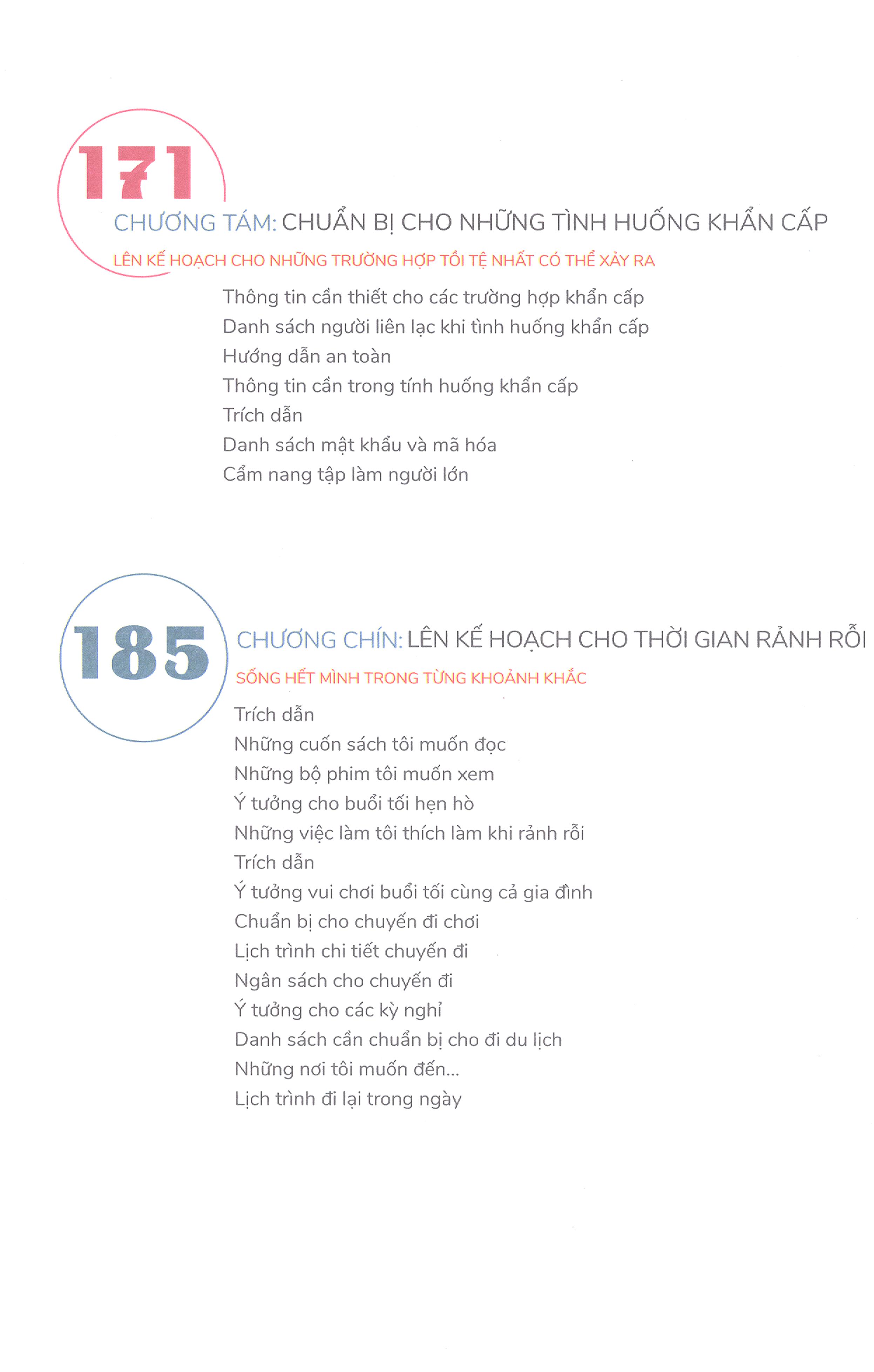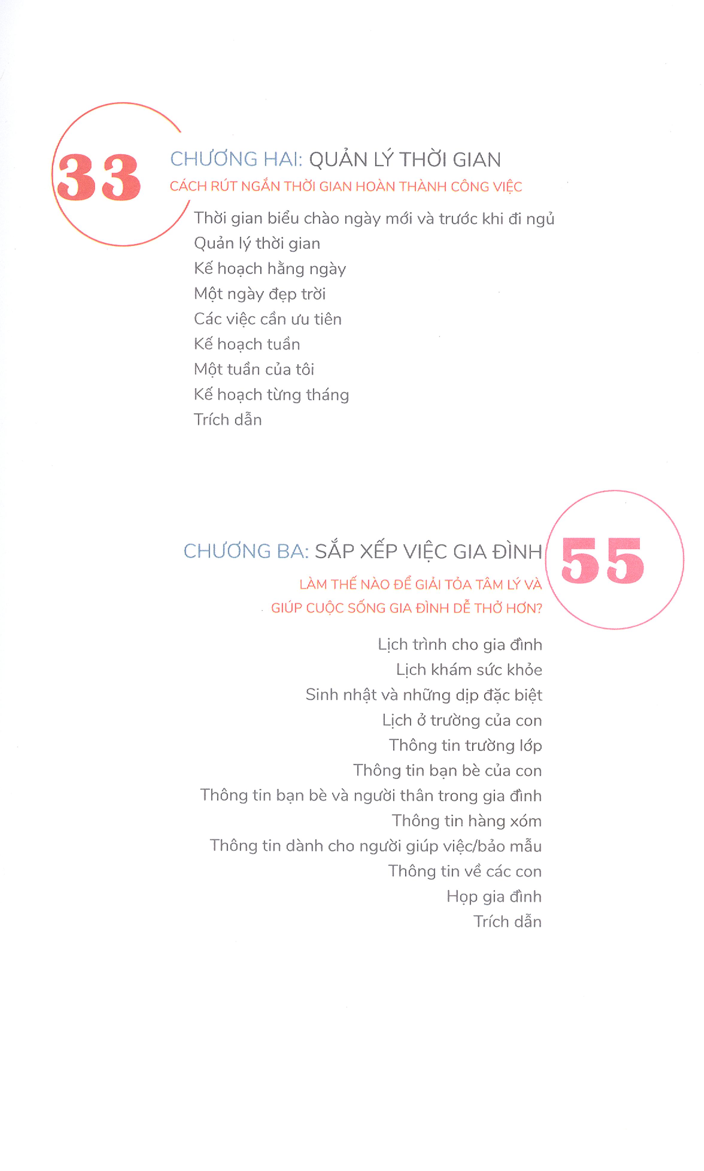 Từ lộn xộn đến chỉn chu sẽ cho bạn câu trả lời. Với hơn 100 bảng biểu và danh sách hữu ích có thể áp dụng trong nhiều lĩnh vực từ dọn dẹp nhà cửa cho đến quản lý thời gian, tài chính, cuốn sách không chỉ mang lại những lời khuyên, mẹo vặt hữu ích mà còn cung cấp công cụ trực tiếp để bạn thực hành và biết cách quản lý cuộc đời mình.  Sách cung cấp hơn 100 mẫu danh sách, bảng biểu hữu ích và thiết thực: • Thời gian biểu cá nhân • Kế hoạch theo Ngày, Tuần, Tháng • Danh mục các công việc cần làm khi dọn dẹp • Sổ sách Quản lý tài chính • Thực đơn và kế hoạch cho bữa ăn hàng ngày • Sổ theo dõi Sức khỏe và Quá trình tập luyện • Bản kế hoạch chuẩn bị cho chuyến du lịch • Và rất nhiều loại nhãn dán.