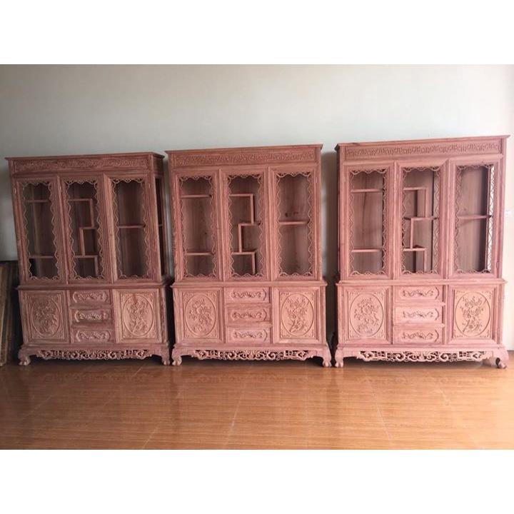 Tủ Rượu Trang Trí 1m2 Gỗ Hương Đá Đục Tay Kênh Bong Vip Nhất