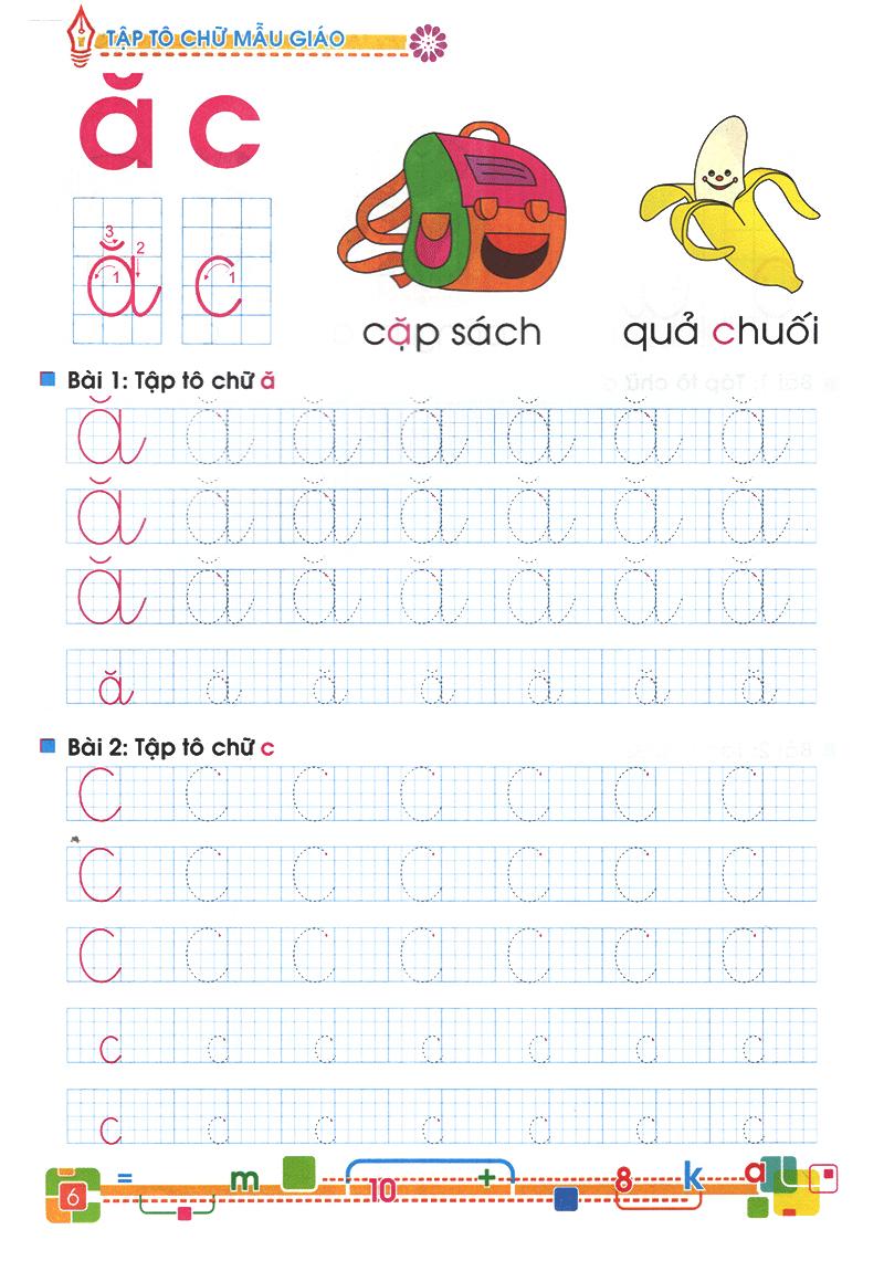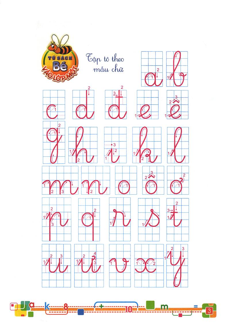 Tủ sách bé vào lớp một - Tập tô chữ mẫu giáo Giúp các bé chuẩn bị vào lớp 1 làm quen với chương trình học tiểu học. Nội dung gần gũi với chương trình giáo khoa và hình minh họa sinh động, bộ sách sẽ giúp các bậc cha mẹ rèn luyện cho con trẻ những nét chữ đầu tiên một cách hiệu quả. Để chuẩn bị vào lớp một, các em cần làm quen và sử dụng thành thục với các chữ cái, các con số từ 1 đến 10, và bước đầu biết viết và ghép vần những chữ cơ bản.