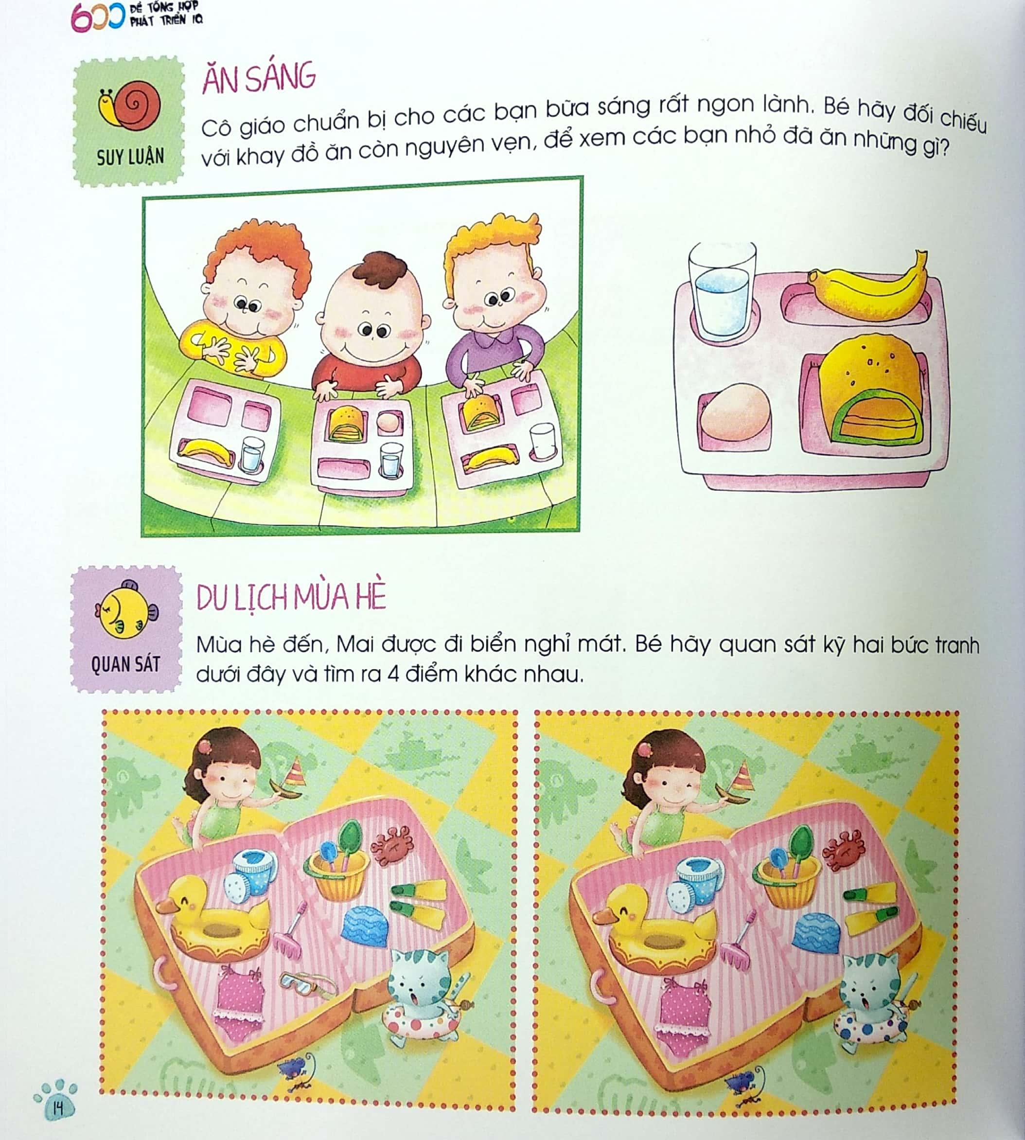 Bộ sách vừa học vừa chơi, kết hợp kiến thức và vốn sống với nhiều đề tài đa dạng, sinh động, thiết thực, giúp trẻ phát triển toàn diện. Bằng những trò chơi logic thú vị với nhiều đề tài đa dạng cùng hình ảnh minh họa sinh động, bộ sách 600 đề tổng hợp phát triển IQ sẽ rèn luyện cho các bé khả năng nhận thức, tưởng tượng, phán đoán và suy luận, giúp bé phát triển trí não tối đa.