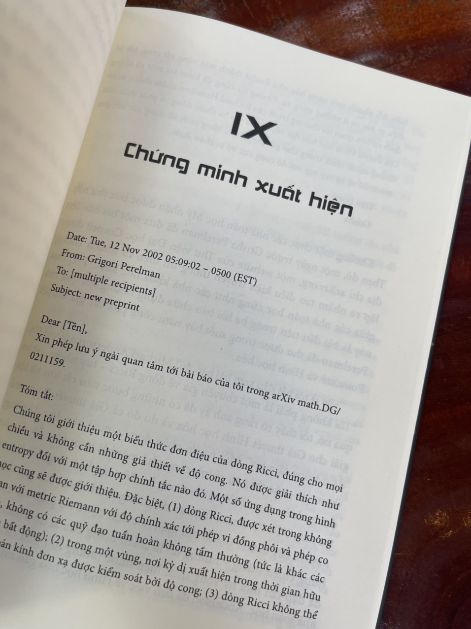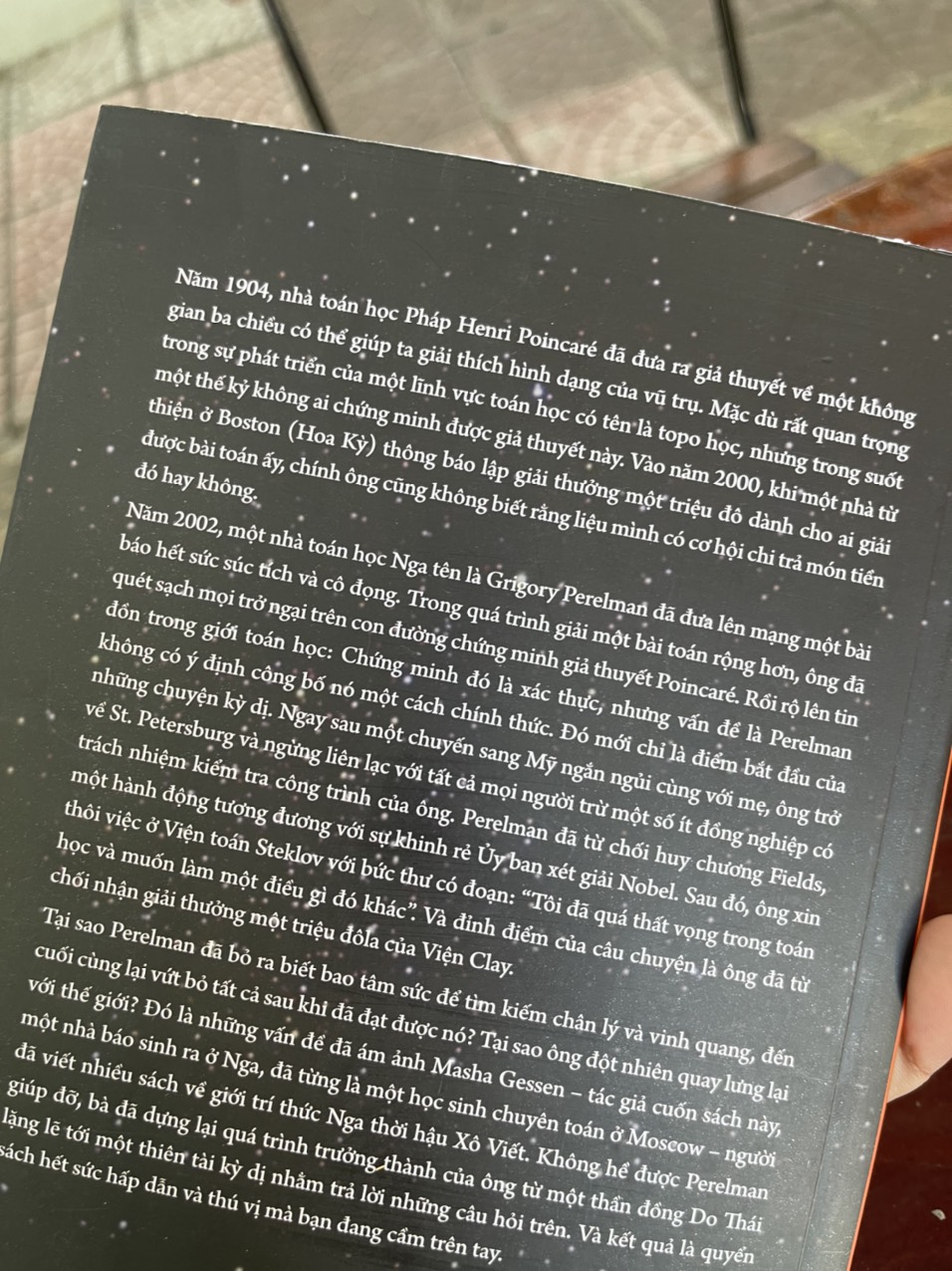 Grigory Perelman, thiên tài toán học người Nga, người đầu tiên giải được một trong bảy bài toán Thiên niên kỷ của viện toán học Clay với giải thưởng lên đến một triệu dollar đã chối bỏ cả thế giới, rút vào sống trong sự im lặng và cô lập hoàn toàn sau thành công vang dội. Câu chuyện trong cuốn sách này là cuộc đời và sự nghiệp của ông, từ lúc bắt đầu bước chân vào toán học, bỏ qua những bộn bề của cuộc sống, chỉ sống với niềm đam mê toán học của mình, cho đến lúc quay lưng lại không chỉ với toán học mà với toàn thế giới.