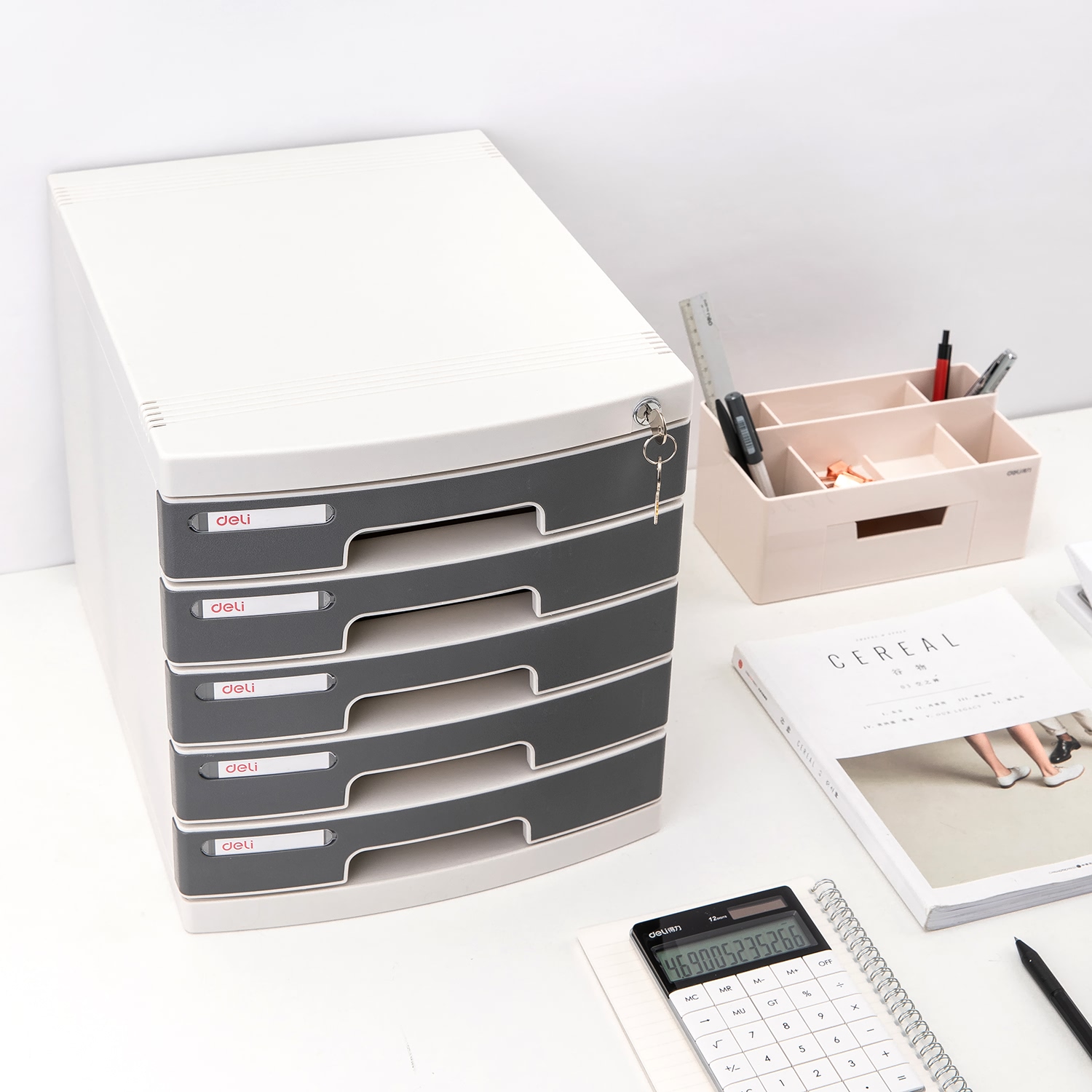 Chất liệu: PP + GPPS Cấu trúc chắc chắn giúp sử dụng thời gian dài Khóa giúp bảo mật cao Ngăn kéo màu trong giúp dễ dàng nhìn bên trong Ngăn kéo phân file giúp