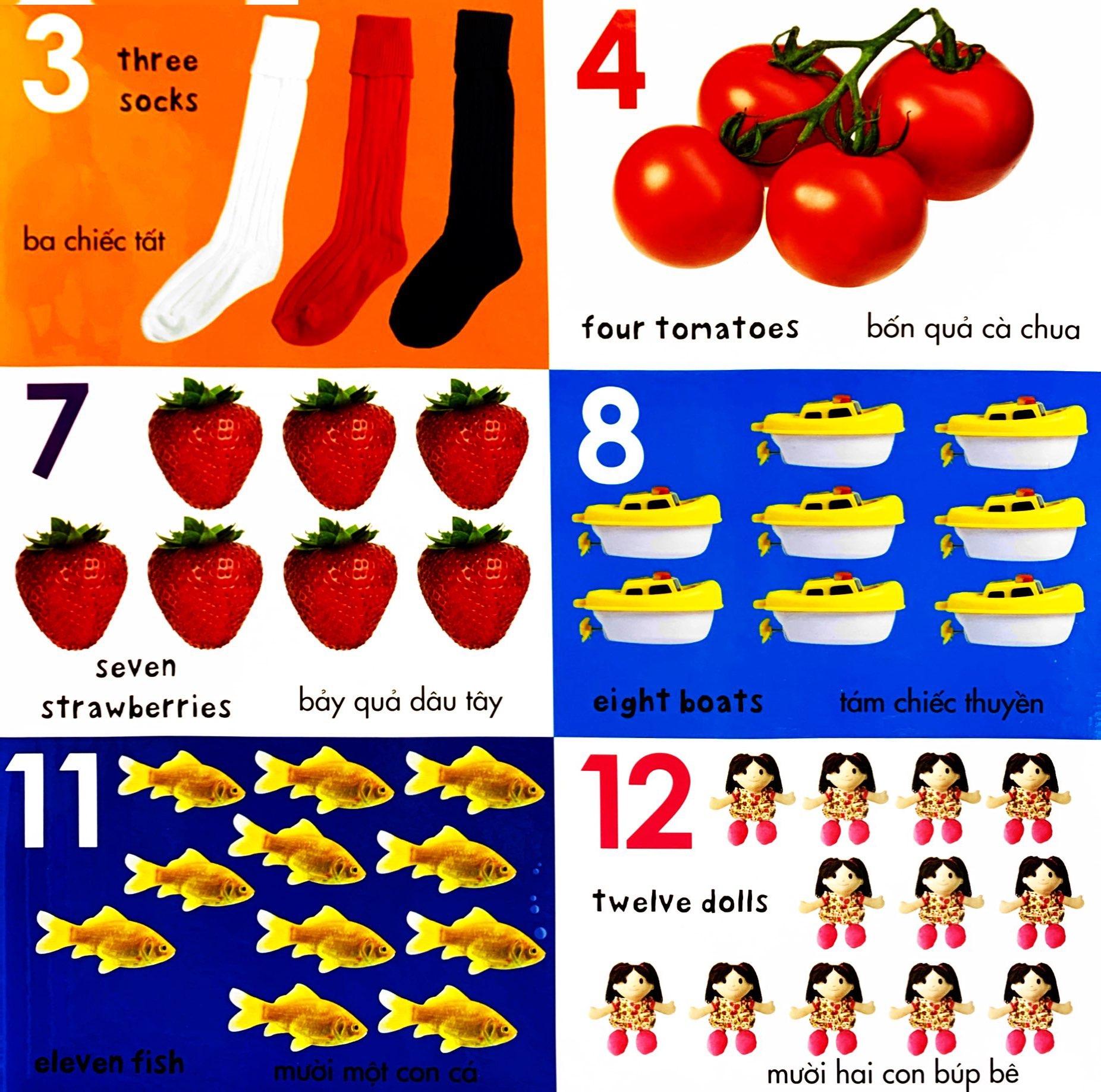 Điểm cộng của bộ sách này còn là yếu tố song ngữ Anh - Việt hấp dẫn, giới thiệu những từ vựng, hình ảnh, kiến thức cơ bản, gần gũi đầu tiên dành cho bé.
