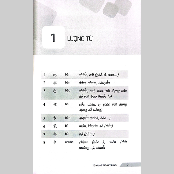 Cuốn Từ vựng tiếng Trung được biên soạn theo các chủ đề cơ bản, gần gũi như: Lượng từ, hình khối, màu sắc, đồ vật, động vật, thực vật, cơ thể người, cảm xúc, tính cách, nghề nghiệp, du lịch, mua sắm... Đây là những từ vựng cơ bản nhất giúp người học dễ nắm bắt, tiếp thu, dễ nhớ, đồng thời bổ trợ cho cuốn Tiếng Trung cho người bắt đầu khiến người học vừa ôn tập vừa mở rộng được kiến thức một cách nhanh nhất và hiệu quả nhất.