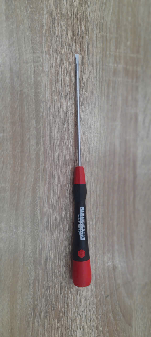 English name:Screwdriver SoftFinish electric Tiêu chuẩnĐược thử nghiệm theo IEC 60900.Ứng dụng Đối với công việc trong khu vực của các bộ phận sống lên đến 1.000 V AC. Size: 2,5 mm Chiều dài: 179