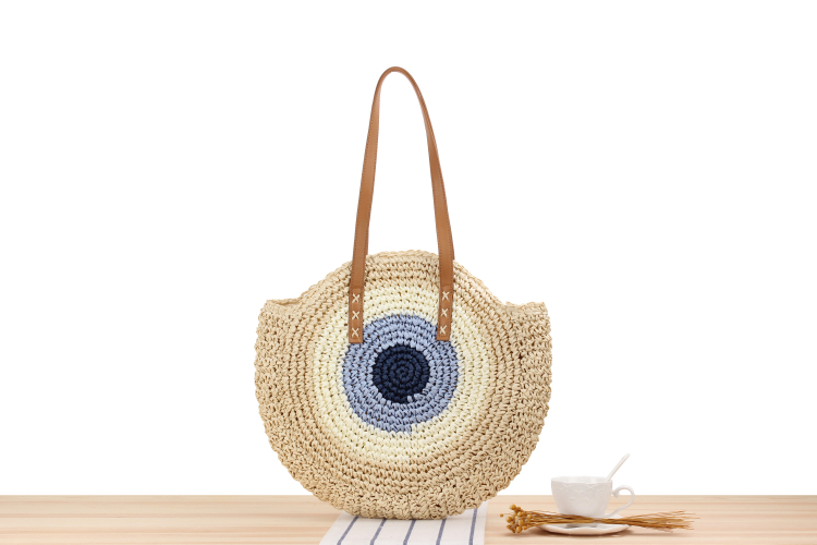Chất liệu:Túi cói tròn bãi biển: Phong cách: Nhật Bản và Hàn Quốc Phong cách: túi đeo vai Vật liệu: cói Chất liệu lót: cotton polyester Xuất xứ: Kích thước:Kích thước lớn: chiều rộng túi 44cm, chiều cao túi 41cm, dây đeo vai cao 24cm Màu sắc:Nâu or Trắng Ý nghĩa:Túi cói tròn bãi biển phong cách thời trang, đẹp và sành điệu Cách dùng:Túi cói tròn bãi biển sử dụng đeo vai