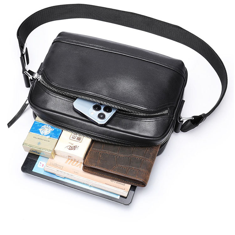 Túi đeo ngực, đeo chéo nam da bò cao cấp BHM9104 được thiết kế khá đơn giản kết hợp với màu đen trơn mang lại sự giản dị cũng không kém phần trẻ trung, năng