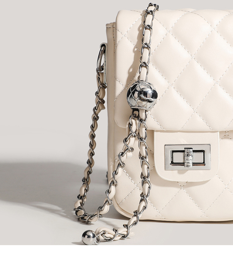 Mẫu túi đeo chéo Yuumy Seasand YN280 thời thượng với thiết kế chần bông quả trám sang chảnh và dây đeo kim loại ánh bạc tinh tế. Chất da mềm mại, form túi vừa vặn,