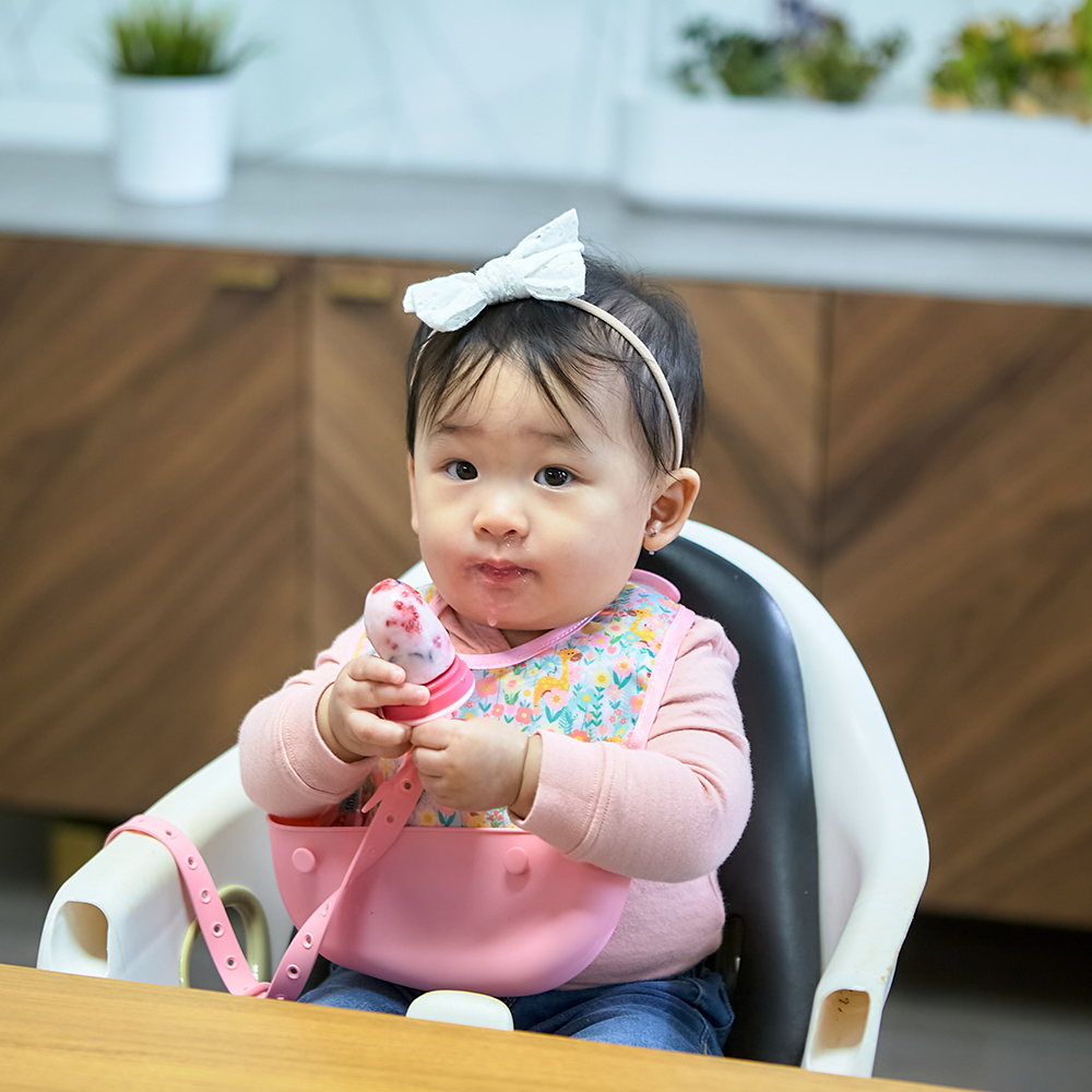 Giúp bé tập ăn dặm, tăng kỹ năng nhai nuốt, kích thích vị giác tận hưởng trọn vị ngon của trái cây hay rau củ thông qua các lỗ của túi lưỡi. Tăng khả năng hoạt động của lưỡi giúp phát triển khả năng ngôn ngữ của trẻ sau này.