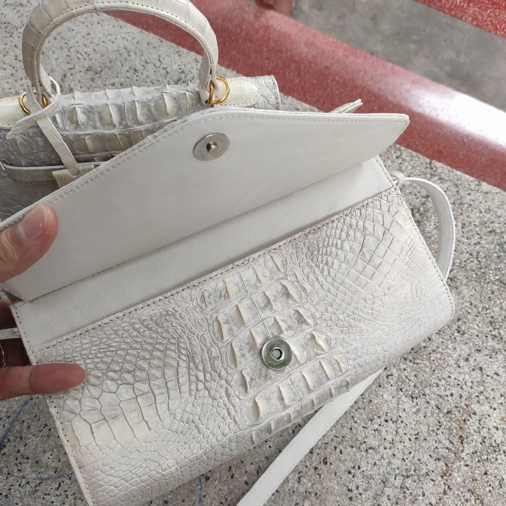 Túi xách da cá sấu bạch tạng màu trắng hymalia #tuidacasaubachtang #tudacasau