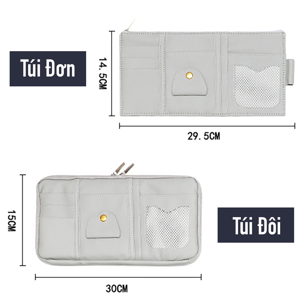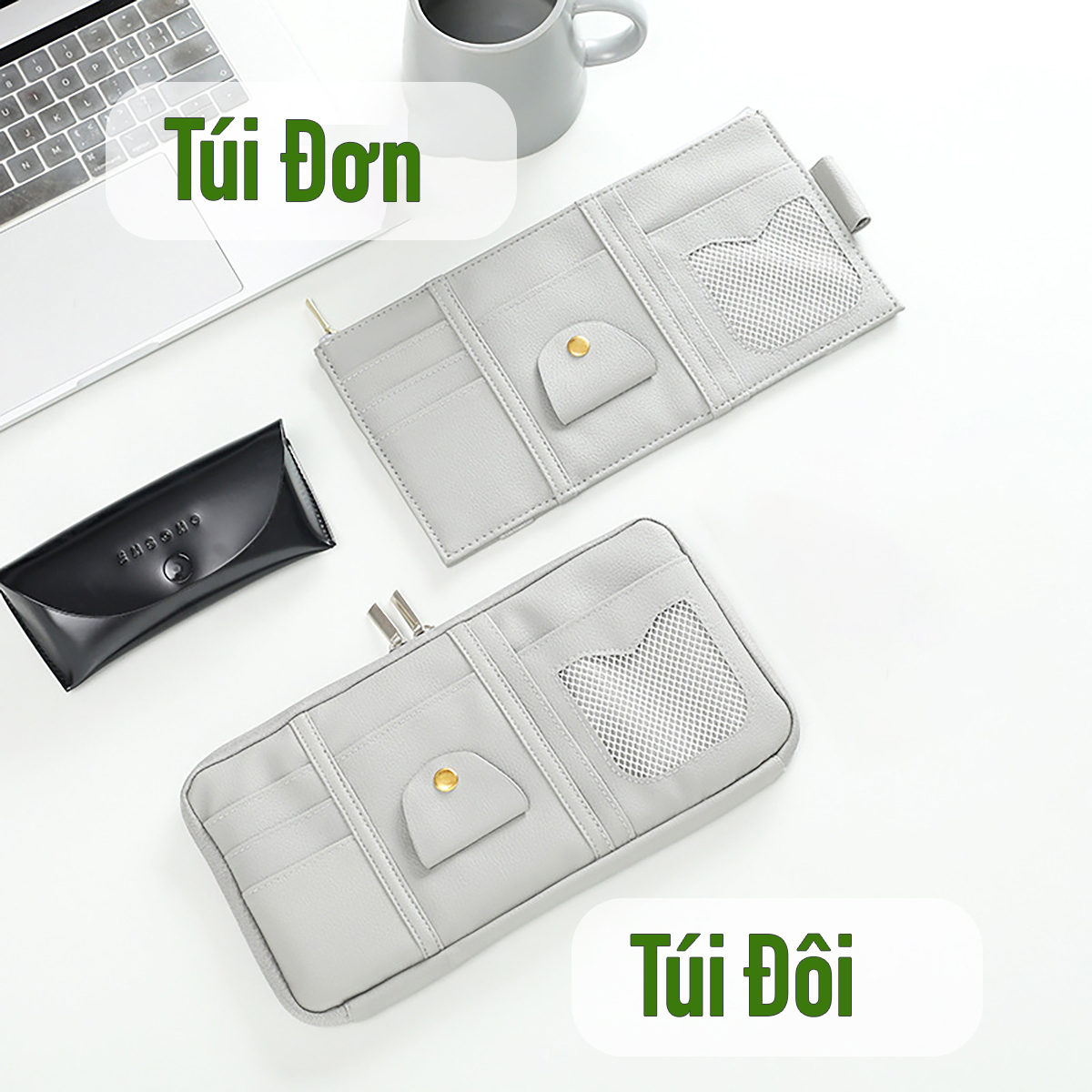 - Túi nhỏ gọn treo vào tấm chắn nắng của xe, được chia nhiều ngăn tiện dụng đựng thẻ, giấy tờ, mắt kính, bút viết, điện thoạ - Giúp không gian xe gọn gàng, sắp