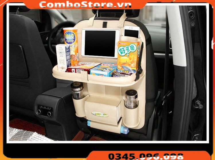Túi treo đồ ghế xe hơi loại có bàn ăn với chất liệu da tổng hợp, sáng bóng, dễ lau chùi, giúp tiết kiệm không gian xe, thiết kế nhiều ngăn giúp để được nhiều