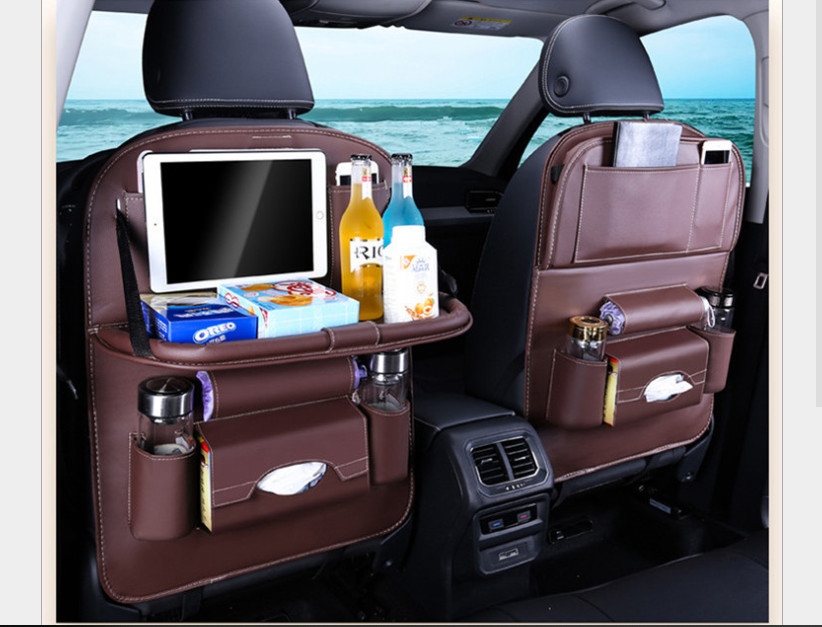 ✨Túi treo đồ kiêm giá để đồ bằng da trên ô tô màu đen và nâu