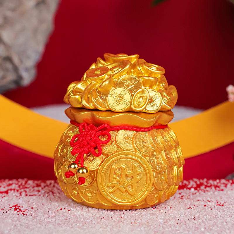 Túi vàng phong thủy may mắn - Hủ đựng muối gạo bàn thờ Thần Thần Tài