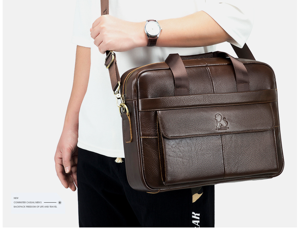 ✨Túi xách nam 100% da bò thật cao cấp phong cách mới 15.6inh