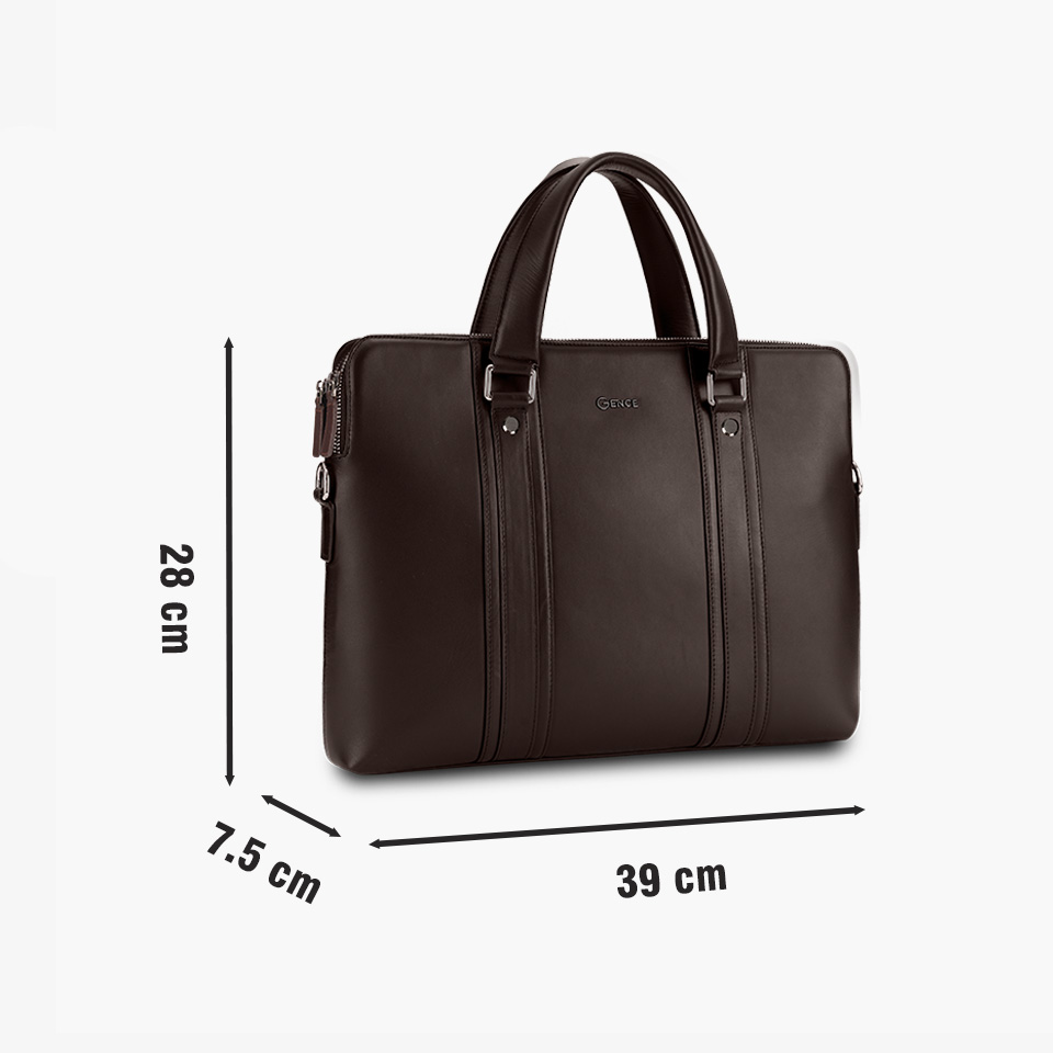 THÔNG TIN SẢN PHẨM Xuất Xứ: Gence Việt Nam - Da thật, Giá trị thật Mã Hàng: GCE26 Kích Thước: 39cm(Dài) x 30cm (Cao) x 7.5cm (Dày) Chất Liệu: Da bò Swift Màu Sắc: Nâu