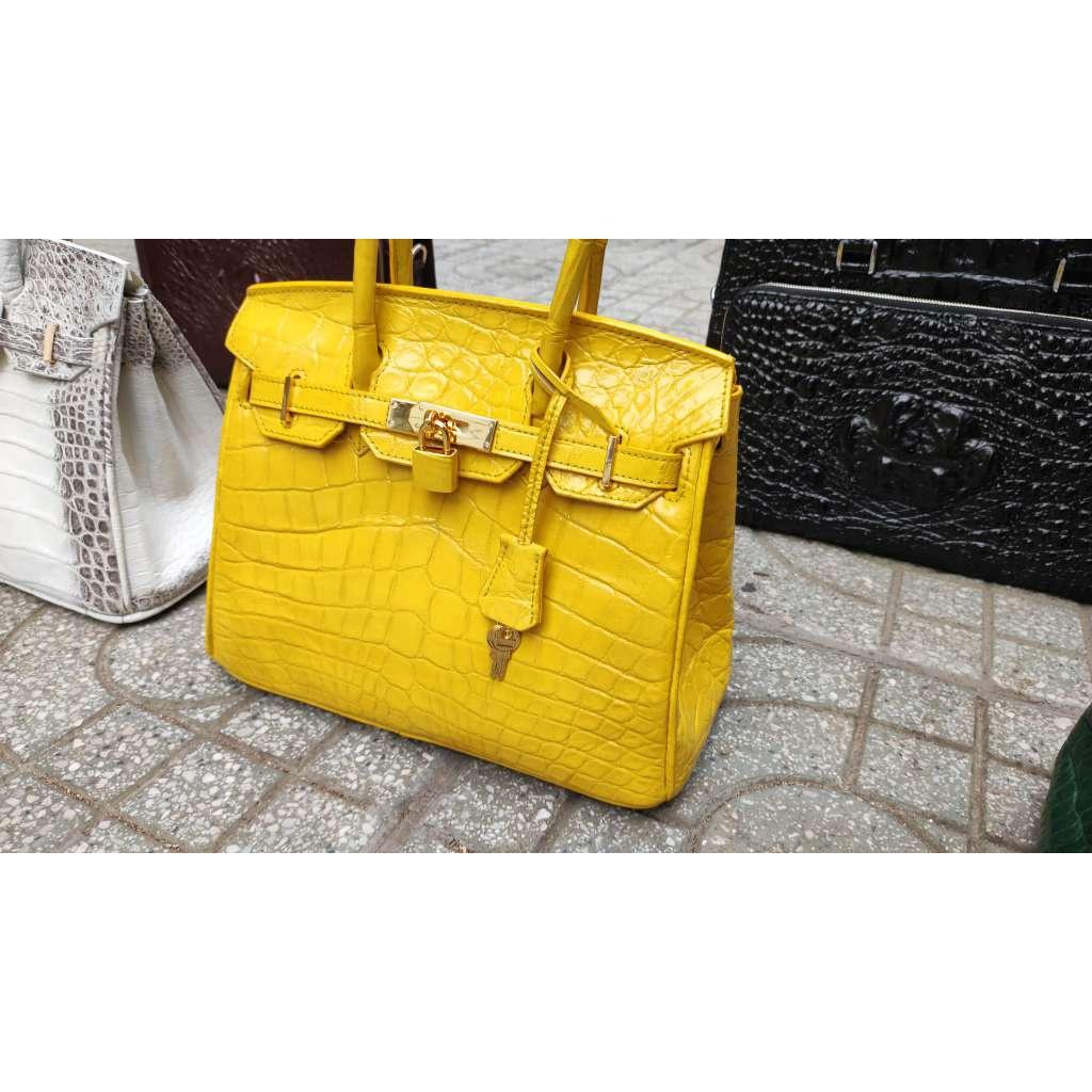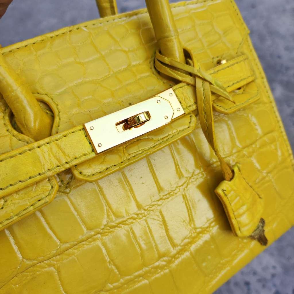✨Túi xách nữ cắt may thủ công. Da cá sấu màu vàng đẹp nổi bật!