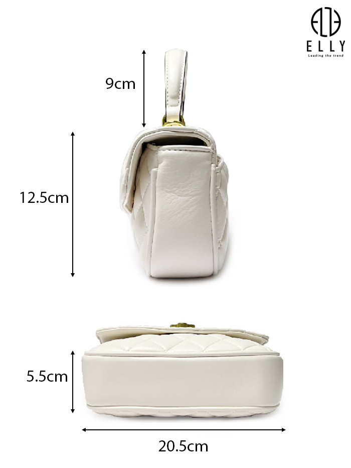 Mua tại Tiktok– Thương hiệu: ELLY. – Sản xuất: Trung Quốc (theo tiêu chuẩn chất lượng của thương hiệu ELLY). – Màu sắc: Đen, trắng. – Kích thước: 20,5 x 12,5 x 5,5 (Chiều ngang x chiều dọc x độ dày). – Chất liệu: Da tổng hợp cao cấp. – Kiểu dáng: Túi đeo chéo, xách tay, đeo vai. – Công năng: Đựng điện thoại, ví, đồ dùng cá nhân, bút, sổ tay nhỏ,.. – Bảo hành: 03 tháng (với lỗi do sản xuất).