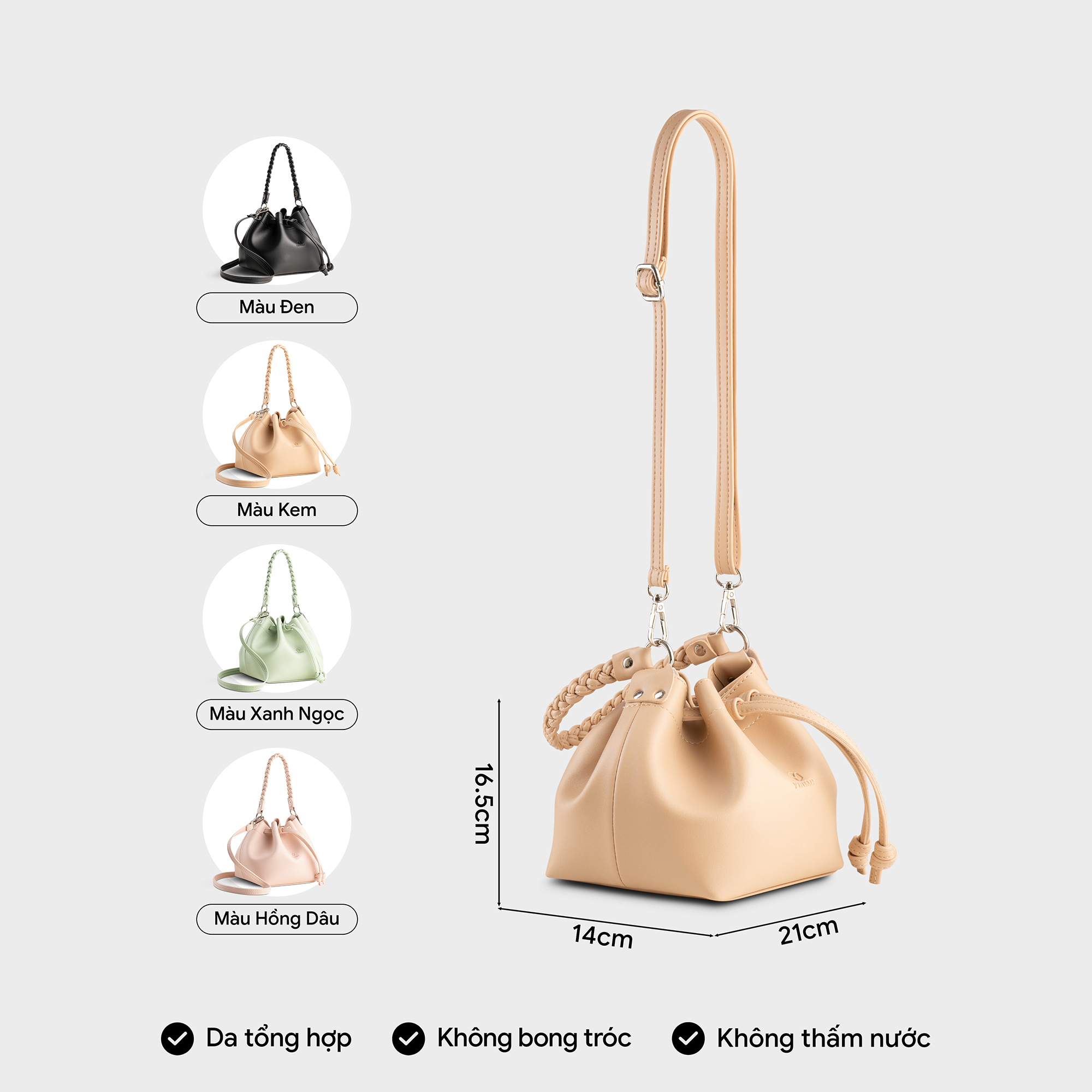 Túi đeo chéo da nữ thiết kế dây rút thời trang Yuumy Seasand YN265 đem đến cho các cô nàng những lựa chọn hoàn hảo với kiểu dáng trẻ trung năng động. Với thiết kế túi rút đặc trưng, sản phẩm không chỉ dễ dàng sử dụng mà còn là điểm nhấn thời trang nổi bật cho set đồ hàng ngày của bạn. Túi được làm từ chất liệu da cao cấp, mềm mại kết hợp với tông màu nhẹ nhàng, mang lại cảm giác sang trọng và phù hợp với mọi trang phục. Tay cầm được thiết kế dạng bện độc đáo, tăng tính chắc chắn đồng thời mang đến nét dịu dàng. Ngoài ra, dây đeo tháo dời giúp bạn linh hoạt sử dụng túi từ xách tay đến đeo chéo. Túi có kích thước vừa vặn cho mọi vật dụng cá nhân nhỏ gọn như điện thoại, ví tiền, son môi,… Phù hợp cho những buổi dạo phố, đi làm, hoặc đi gặp gỡ bạn bè.