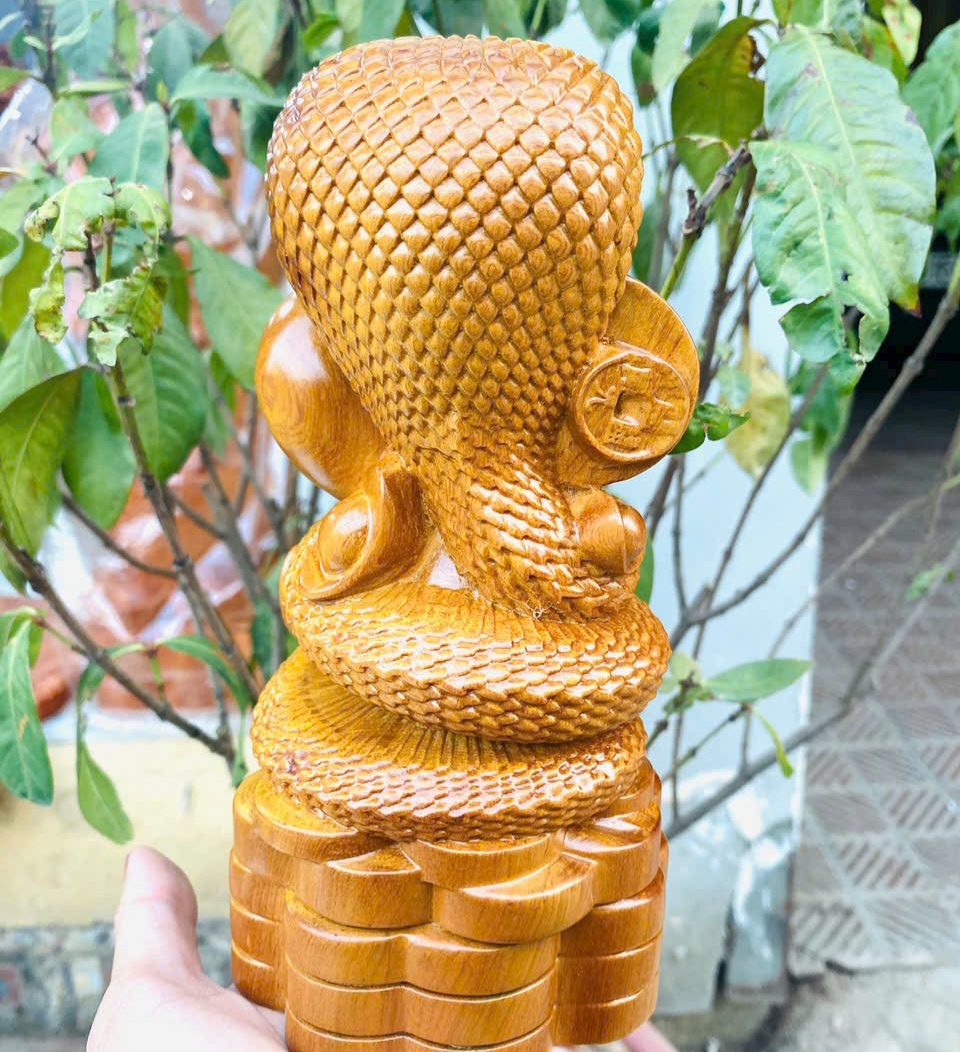 ✨Tượng con rắn phong thủy cầu tài lộc bằng gỗ bách xanh cao 20x10x8cm