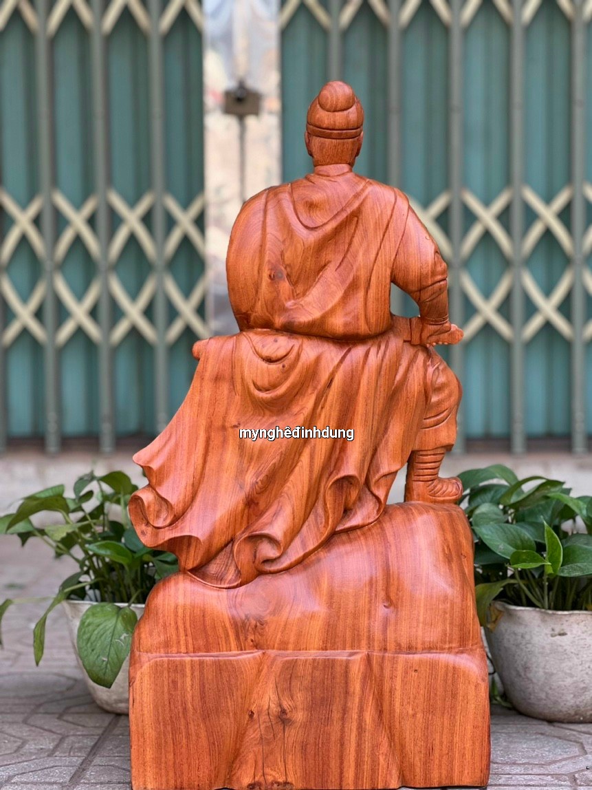 _ Tượng được điêu khắc chạm trổ tỉ mỉ ,tinh sảo kỳ công .Đi hầu hết tất cả mọi chi tiết góc ngách nội dung hoa văn của tượng .Đều được gọt tỉa chỉnh sửa sắc nét hoàn toàn bằng tay thủ công .Đồng thời tượng được kiểm định kỹ lưỡng khắt khe ,như cho vào thẩm sấy cho gỗ khô kiệt .Mục đích trống dập nứt vênh mo mối mọt .Kết hợp với trà nhám ,đánh giấy giáp nhiều nước sờ mát lạnh .Song cho vào phun lót làm bóng mờ để giữ lại mầu sắc vân gỗ tự nhiên .Tượng được làm và hoàn thiện do bàn tay khối óc tài hoa .Từ những người thợ giàu kinh nghiệm ,cũng như tay nghề cao trong làng nghề truyền thống .