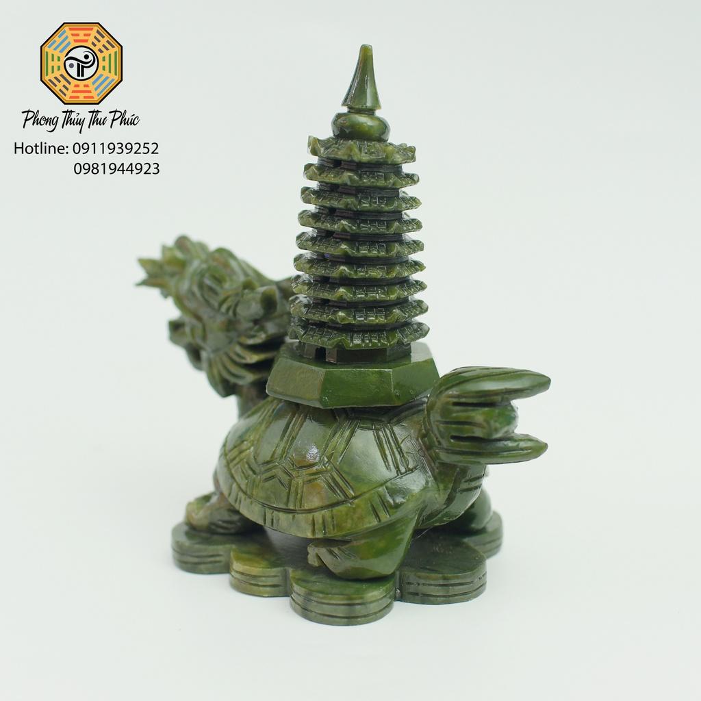 ✨Tượng Long Quy cõng tháp văn xương 9 tầng , đá sarphentine màu xanh,Kích thước cao 18 x 17 x 10 cm, nặng 1,3kg