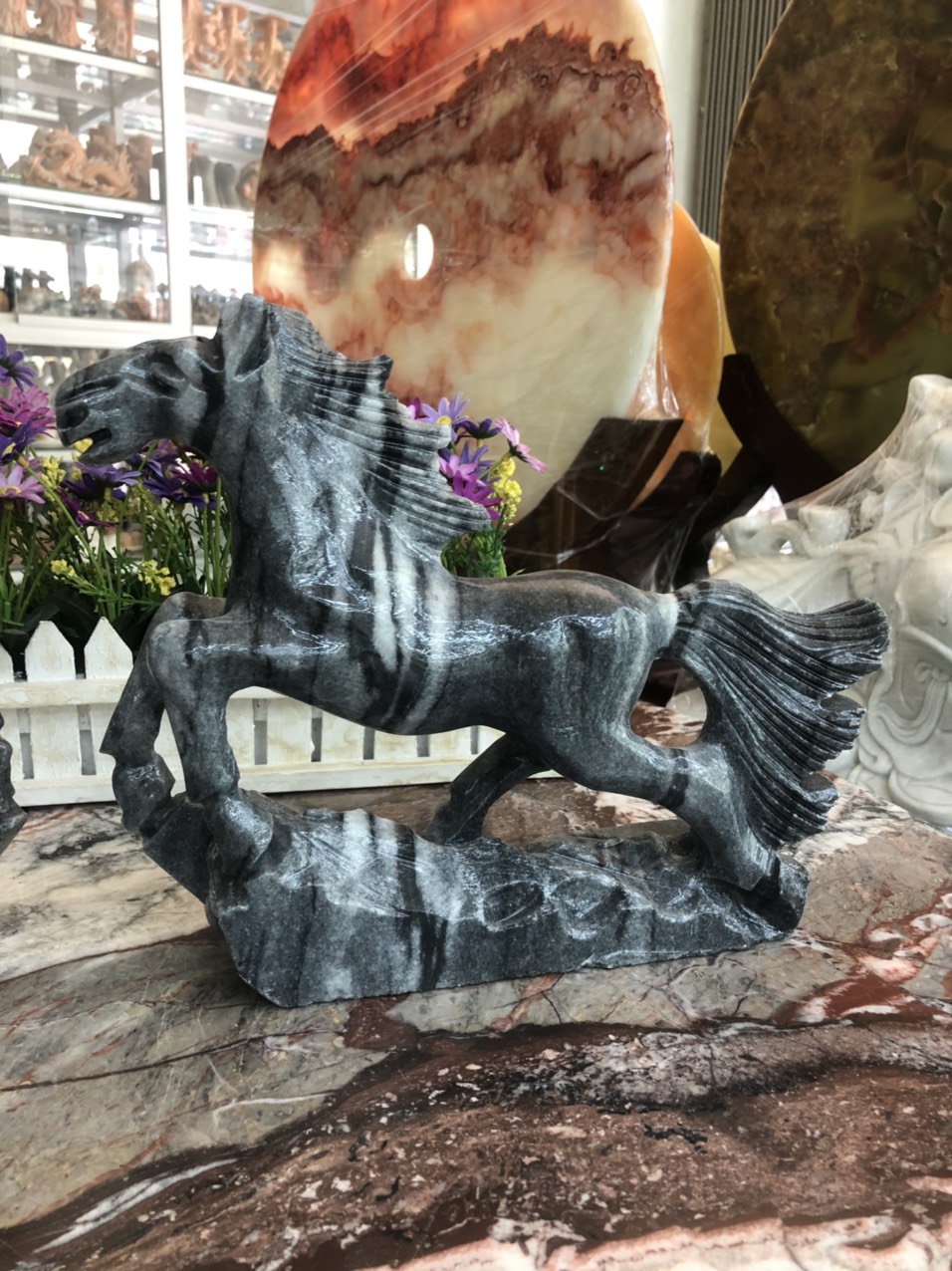 ✨Tượng Ngựa phong thủy rước công danh tài lộc đá cẩm thạch vân đen để bàn - Dài 25 cm