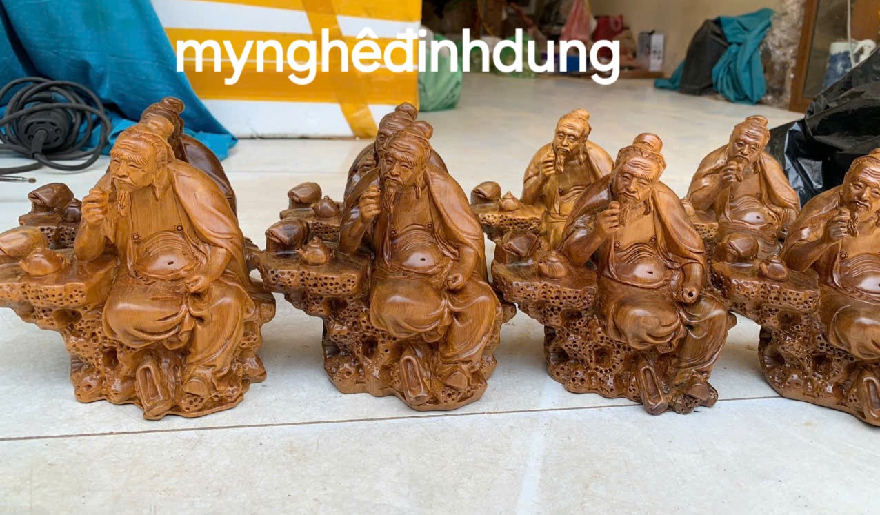 _ Bộ tượng ngũ vị thần tài được làm bằng chất liệu gỗ bách xanh liền khối tữ nhiên 100% _ Kt cao 20×8×6cm _ Tượng ngũ vị thần tài được trạm trổ ,điêu khắc