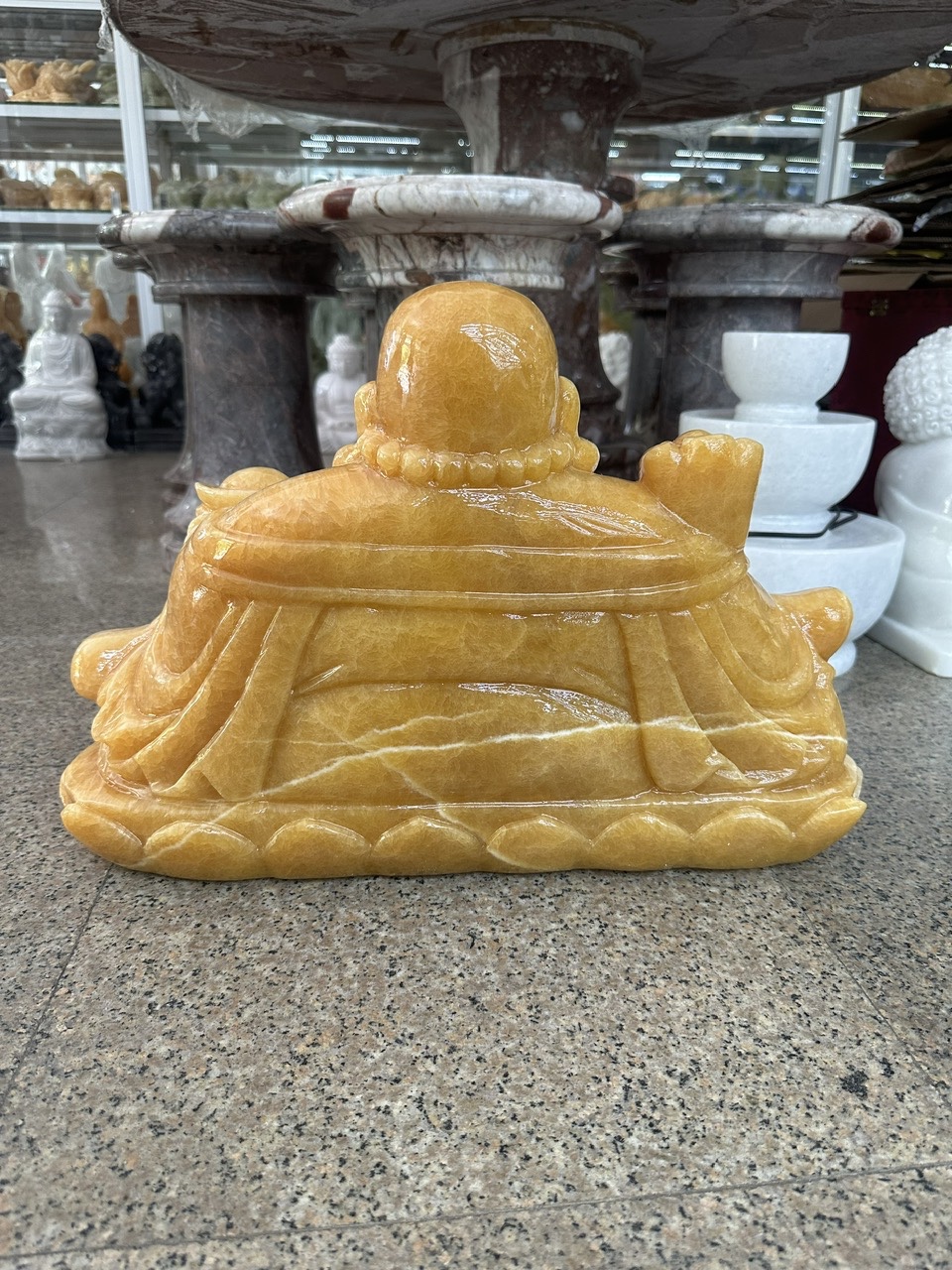 Chất liệu: Đá ngọc Hoàng Long Kích thước: Dài 50 cm x Rộng 20 cm x Cao 34 cm Khối lượng: 40 kg Phật Di Lặc trong Phong thủy Còn gọi là "Phật Cười", Di