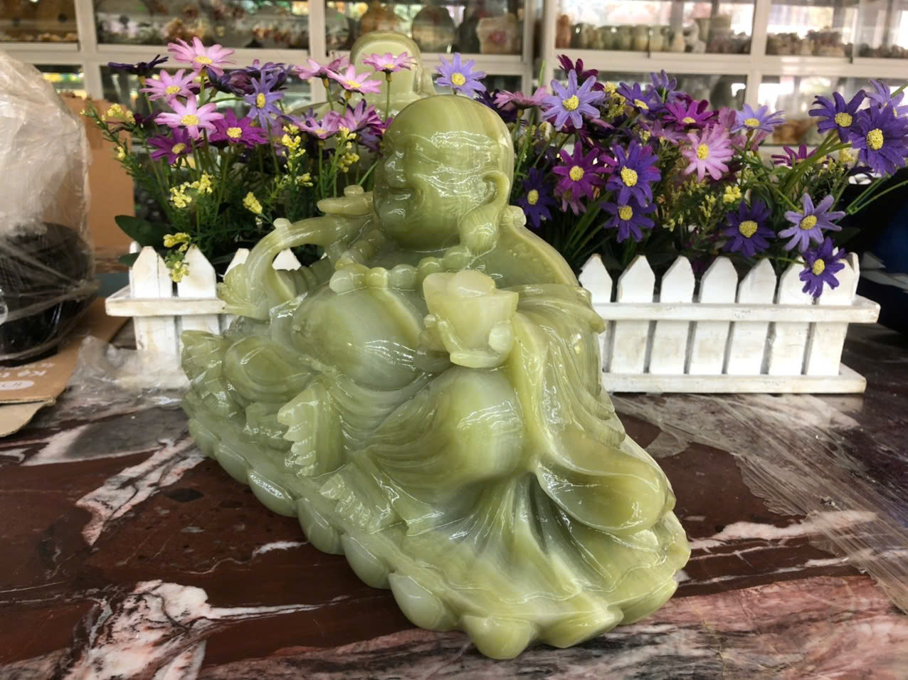 TP: Tượng Phật Di Lặc Như Ý - Ngọc Onyx xanh #phongthuygiagoc