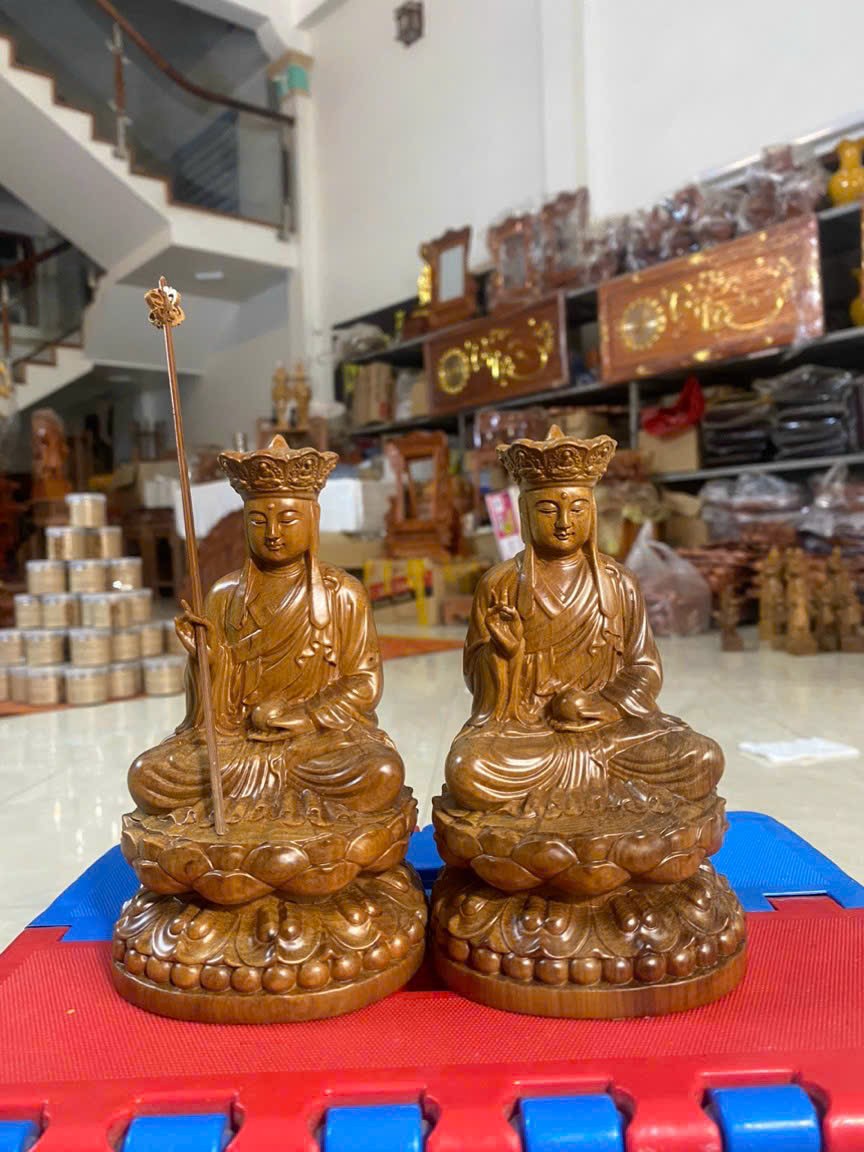 Tượng phật địa tạng cao 30cm và 40cm chất liệu gỗ bách xanh