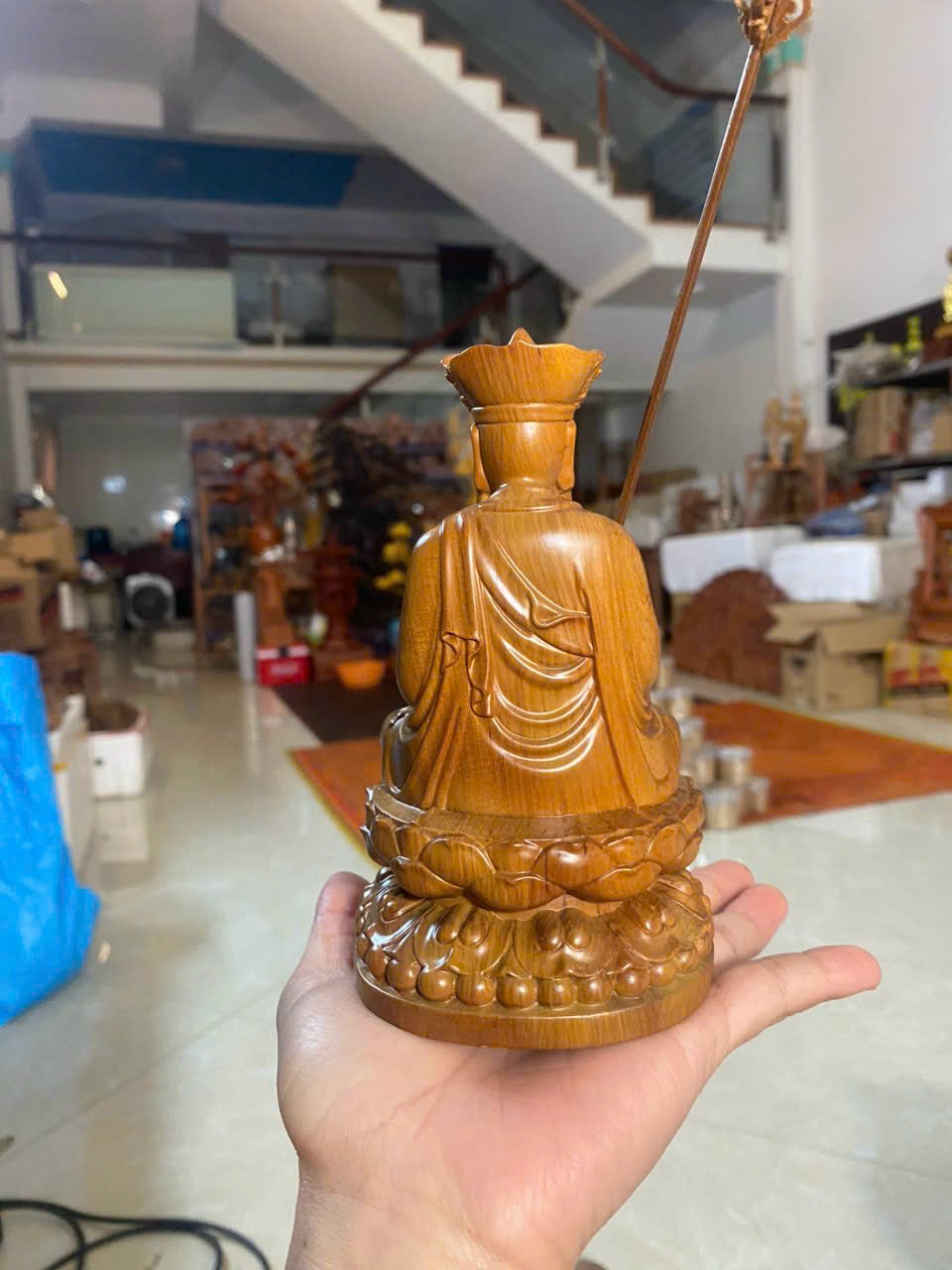 _ Tượng được chạm khắc tỉ mỉ ,tinh xảo kỳ công .Đi hầu hết tất cả mọi chi tiết góc ngách nội dung hoa văn của tượng đều được gọt tỉa chỉnh sửa sắc nét hoàn toàn bằng tay thủ công .Tượng được làm và hoàn thiện do bàn tay khối óc tài hoa .Từ những người thợ dầy dặn kinh nghiệm cũng như tay nghề cao trong làng nghề truyền thống .