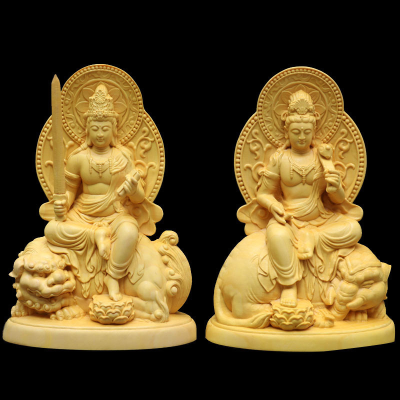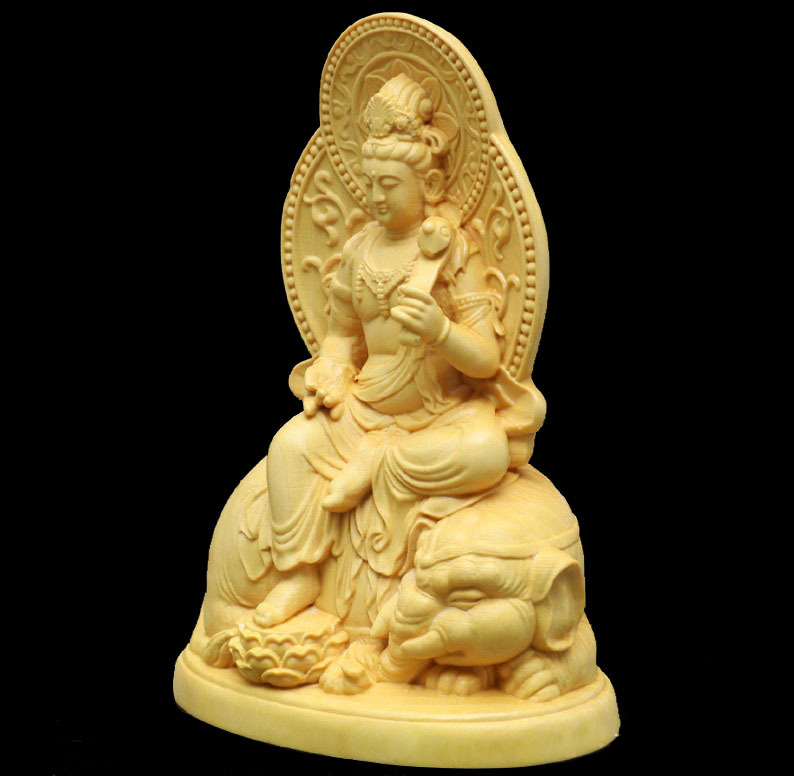 Tượng phật Phổ Hiền Bồ Tát gỗ hoàng dương để ô tô, bàn làm việc - thucongmynghevietnam.vn