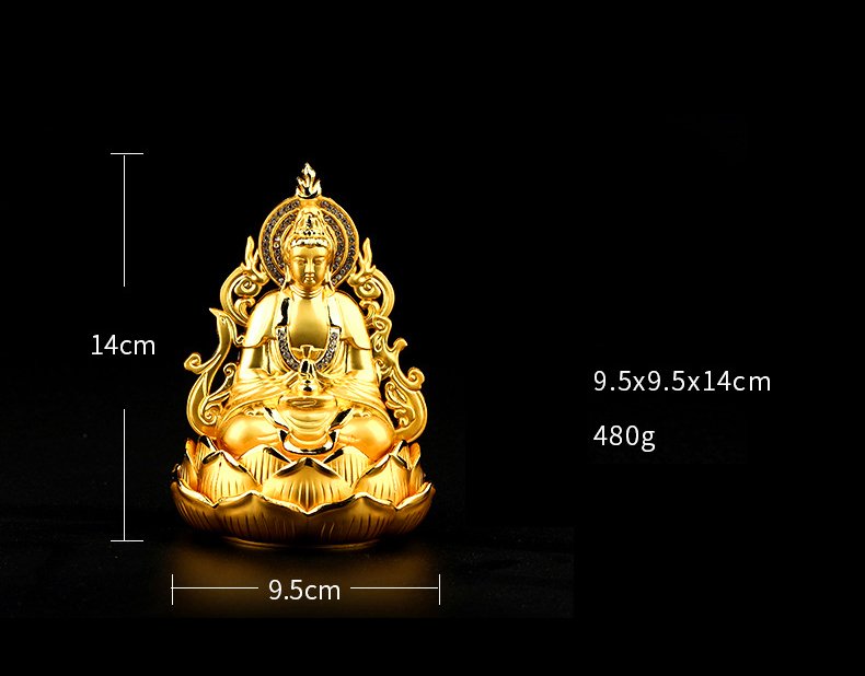 ✨Tượng Phật Quan Âm bằng hợp kim mạ vàng ngồi đài sen để xe ô tô C13 (Tượng 2 mặt)
