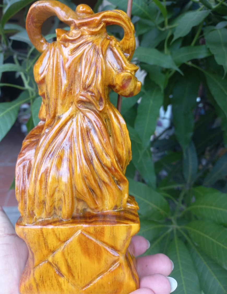 Tượng Quan Công cưỡi ngựa gỗ nu gõ hay gỗ gõ vẽ nu cao 50cm ( tính đao 70cm ) x Ngang 40cm x Sâu 15cm Biểu tượng sức mạnh sự dũng mãnh kiên cường