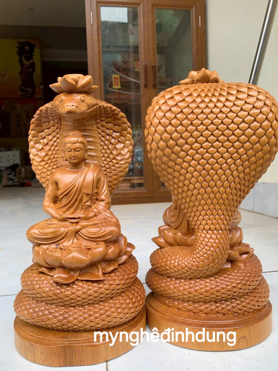 Mua tại TiktokTượng thần rắn bảo vệ đức Phật được làm bằng chất liệu gỗ ngọc Am liền khối tự nhiên 100% kt cao 40x19x18cm _ Tượng được chạm khắc vô cùng tỉ mỉ tinh xảo kỳ công. ĐI HẦU tất cả mọi chi tiết góc ngách nội dung hoa văn của Tượng đều được gọt tỉa chỉnh sửa sắc nét hoàn toàn bằng tay thủ công truyền thống.