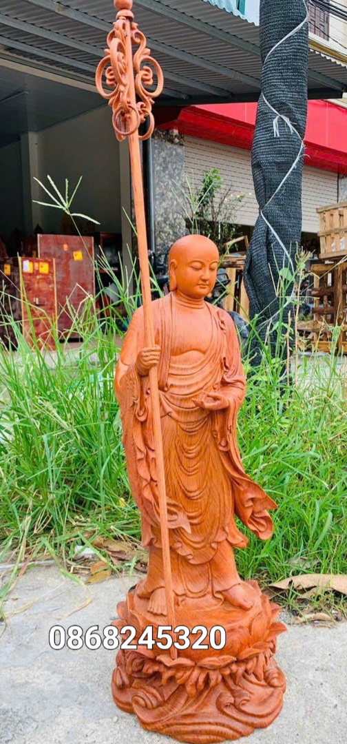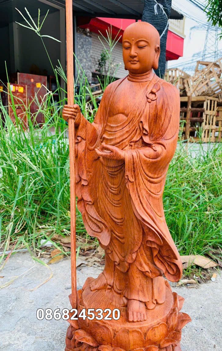 ✨Tượng tôn giả mục kiền liên bằng gỗ hương đá kt cao 60×22cm