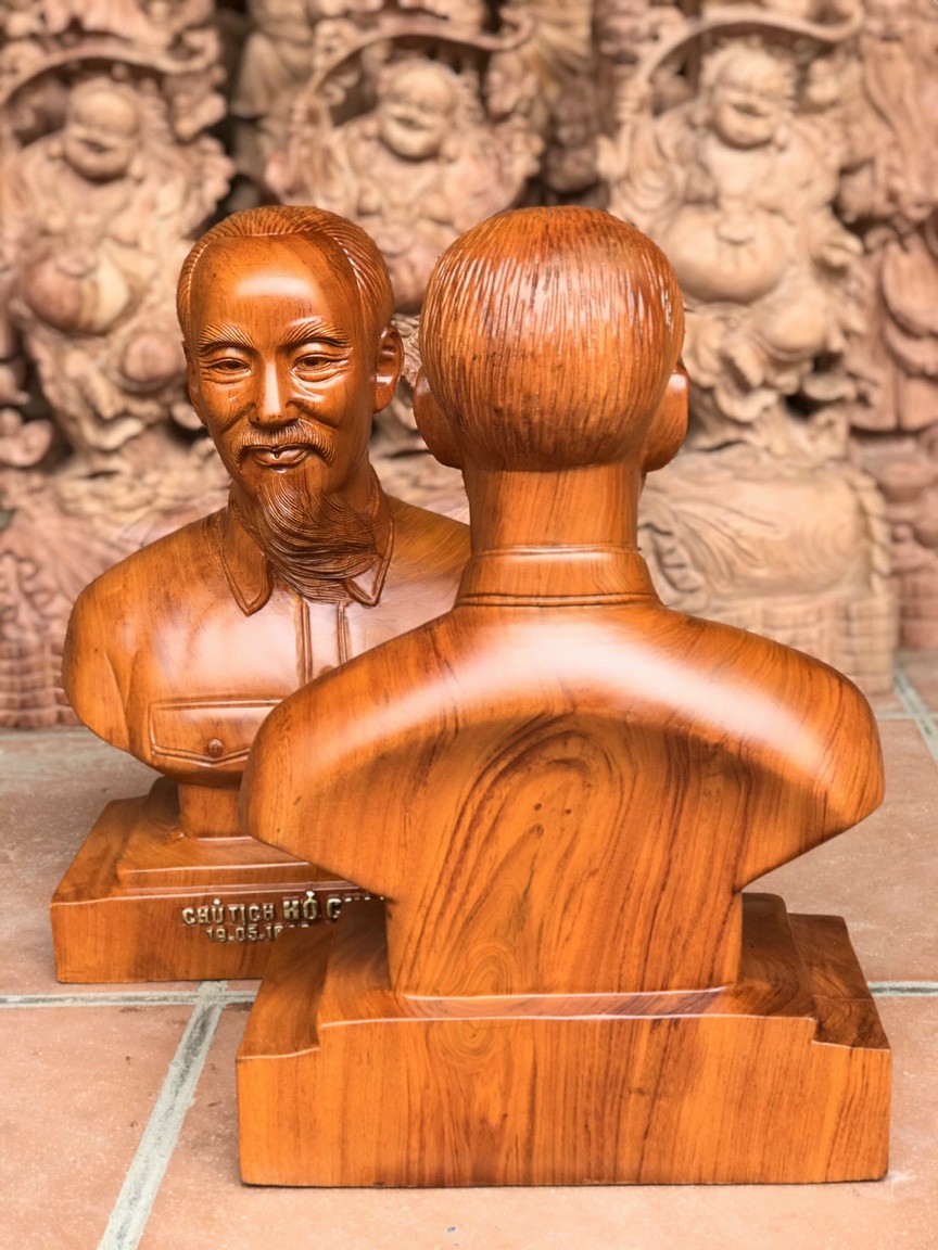 _ Tượng truyền thần chủ tịch hồ chí minh được trạm khắc vô cùng tỉ mỉ tinh sảo kỳ công ,Đi hầu hết tất cả mọi chi tiết góc ngách của Tượng đều được ngọt tỉa chỉnh sửa hoàn toàn bằng tay thủ công ,Đồng thời tượng được kiểm định rất kỹ lưỡng như cho vào thẩm sấy cho gỗ khô kiệt ,Mục đích trống dập nứt vênh mo mối mọt ,Kết hợp với trà nhám đánh giấy giáp nhiều lần cho sạch sẽ ,sờ mát lạnh song cho vào phun lót làm bóng mờ giữ lại mầu sắc vân gỗ tự nhiên ,Tượng hồ chủ tịch được làm và hoàn thiện do bàn tay khối óc tài hoa ,Từ những người thợ dầy rặn kinh nghiệm ,.Cũng như tay nghề cao trong làng nghề truyền thống ,Chính vì thế tượng chủ tịch hồ chí minh đã đáp ứng đầy đủ những tiêu trí ( Đẹp bền rẻ ) Thẩm mỹ nghệ thuật với chất lượng tuyệt vời