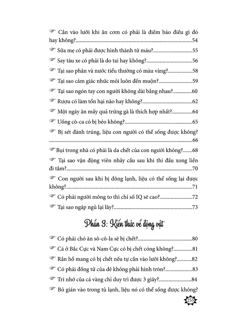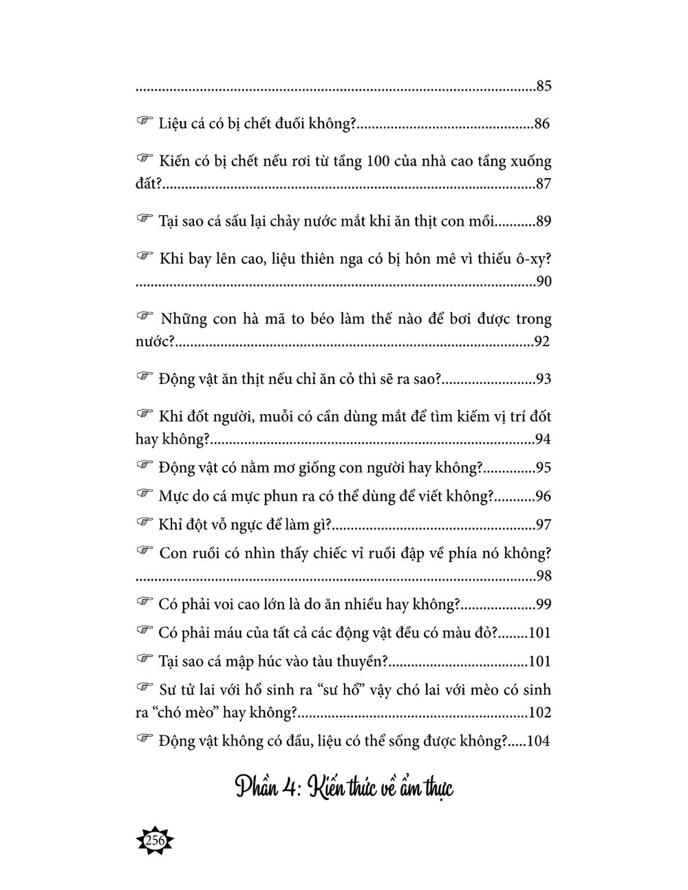 Sách cung cấp các kiến thức về cuộc sống, sức khỏe, động vật, ẩm thực, cơ thể con người, giải trí, lịch sử, văn hóa, khoa học kỹ thuật, về thế giới…nhằm giúp chúng
