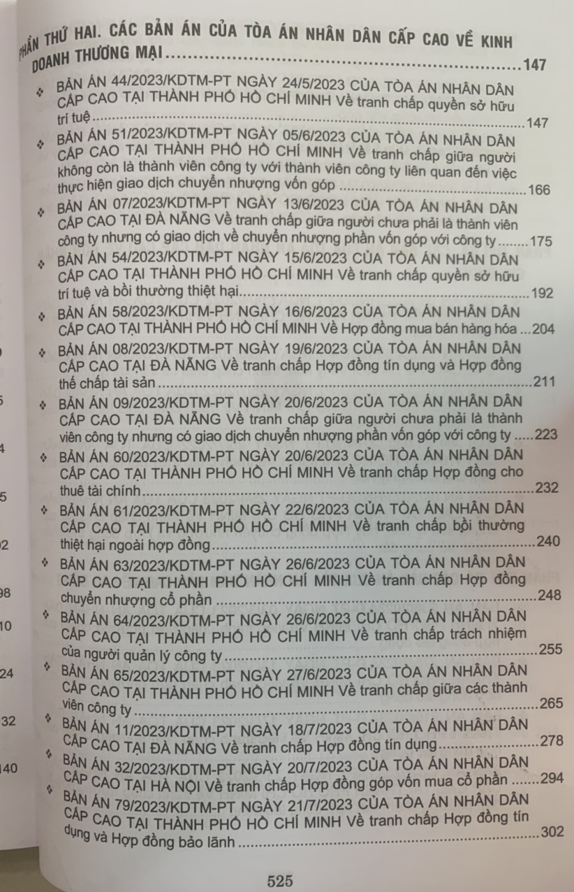 Phần thứ hai. Các Bản án của Tòa án nhân dân cấp cao về kinh doanh thương mại